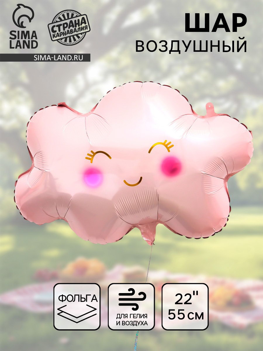 Надувка шара: Воздухом, Гелием Размер упаковки: 15 x 0.3 x 20 см. tnved: 9503010000 Цвет: Розовый Диаметр, дюйм: 22 Вид шара: Фигура Рисунок: Да Оттенок: Глянец Адресат: Без адресата Индивидуальная упаковка: Нет Наличие клапана: Да Тематика рисунка: Разное Набор: Нет Фольгированный воздушный шар "Розовое облако" – украшение для любого мероприятия! Он добавит оригинальности и яркости празднику. Преимущества: