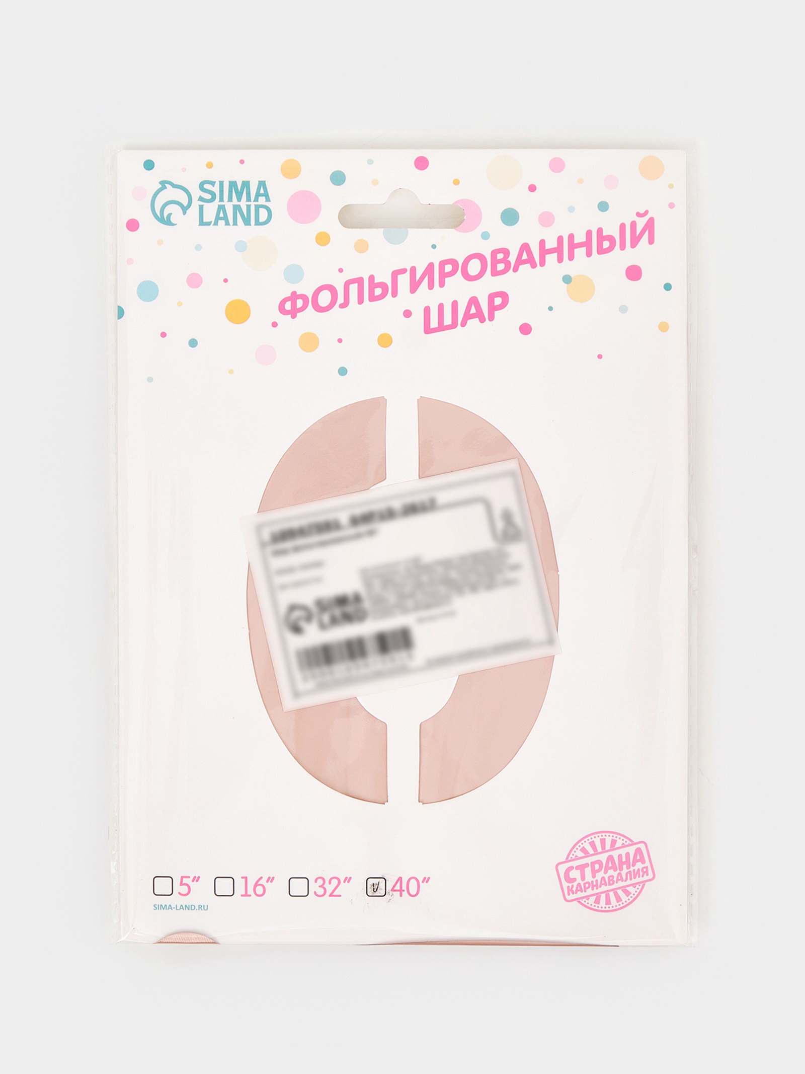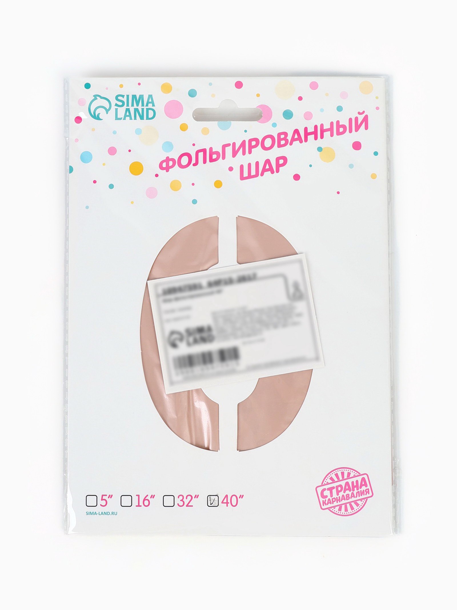 Воздушный шар фольгированный 40""Цифра 0", нежно - розовый, 50x100x0.1 см., Страна Карнавалия, Китай