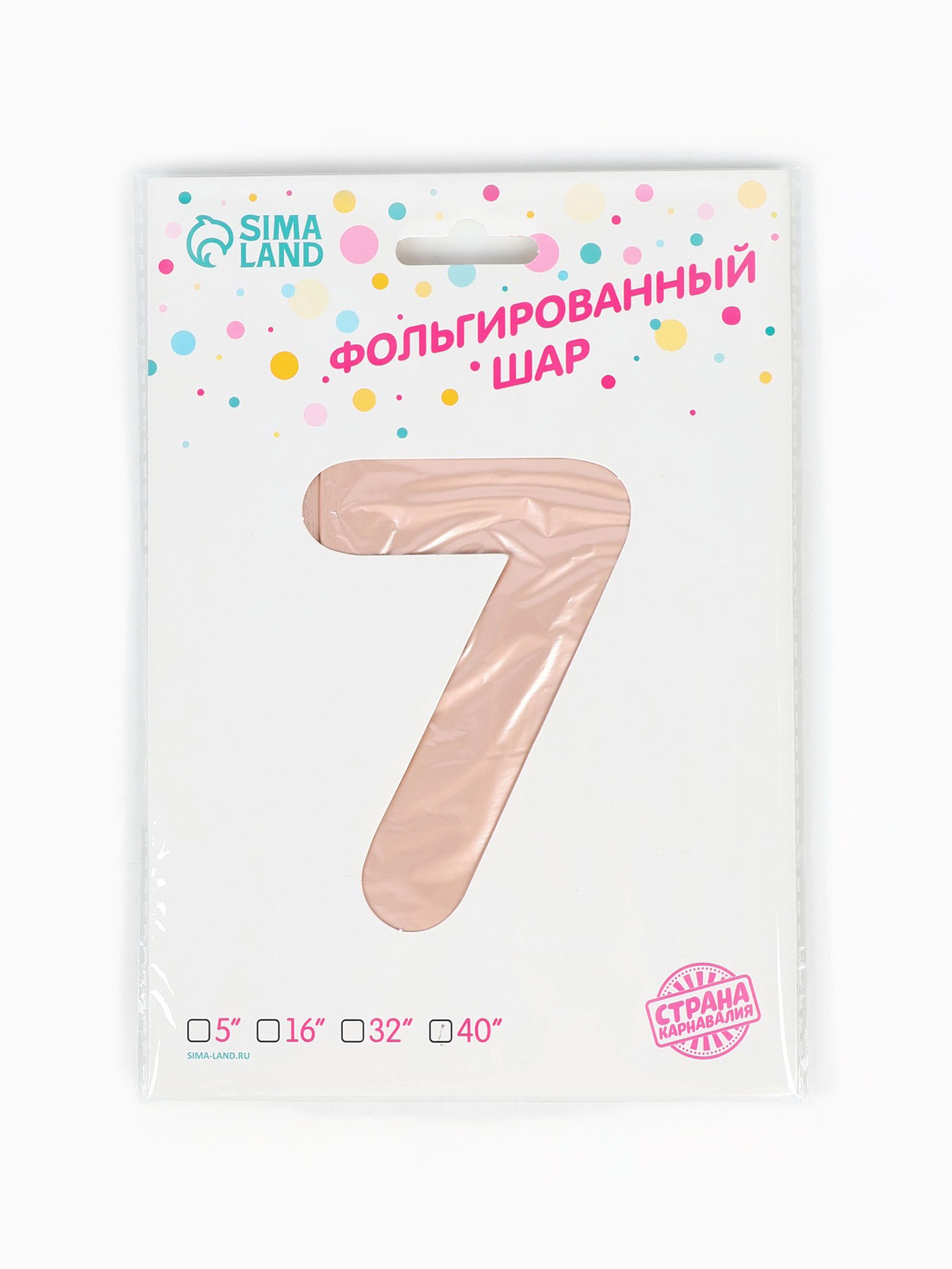 Воздушный шар фольгированный 40""Цифра 7", нежно - розовый, 50x100x0.1 см., Страна Карнавалия, Китай