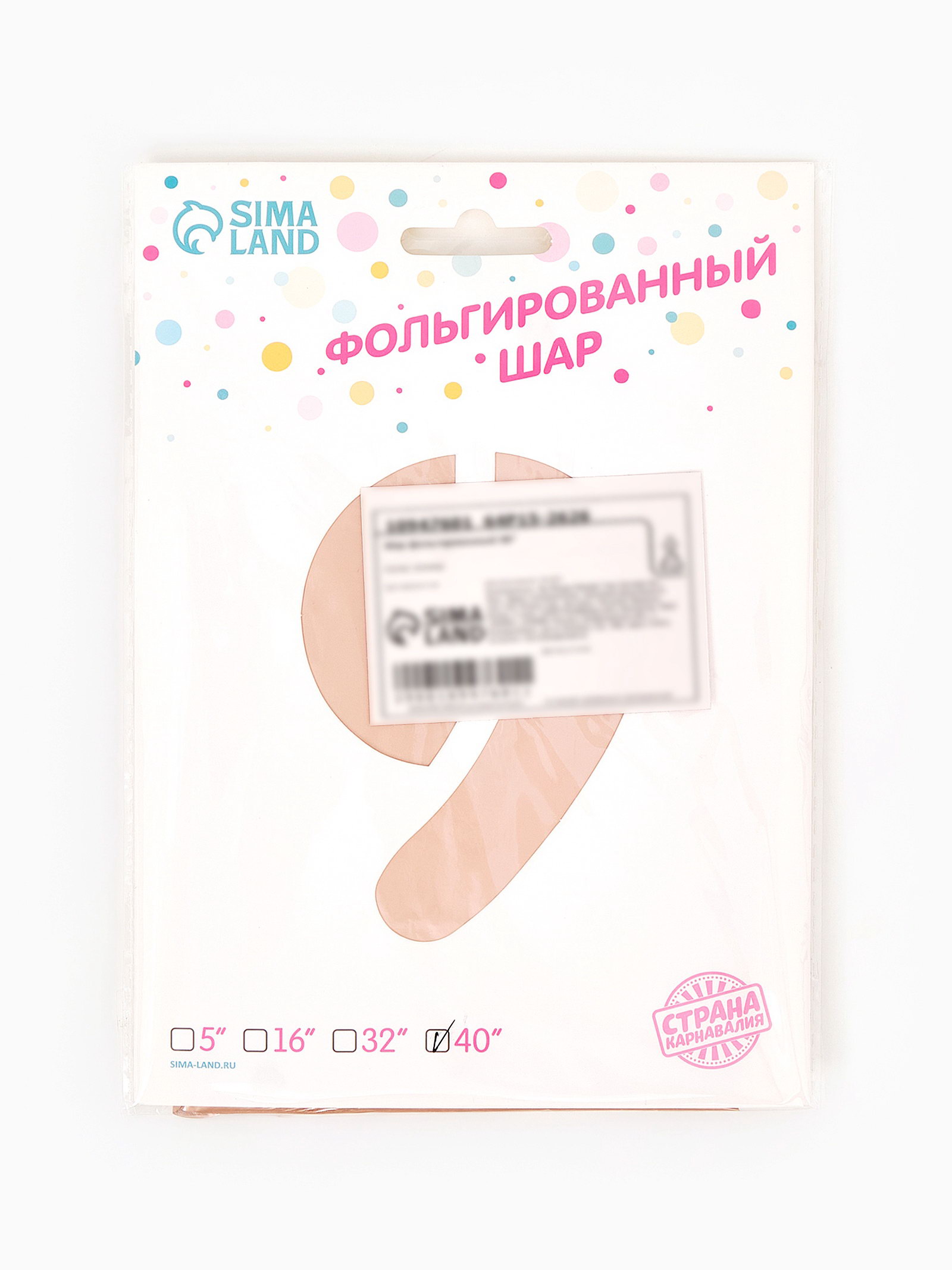 Воздушный шар фольгированный 40""Цифра 9", нежно - розовый, 50x100x0.1 см., Страна Карнавалия, Китай