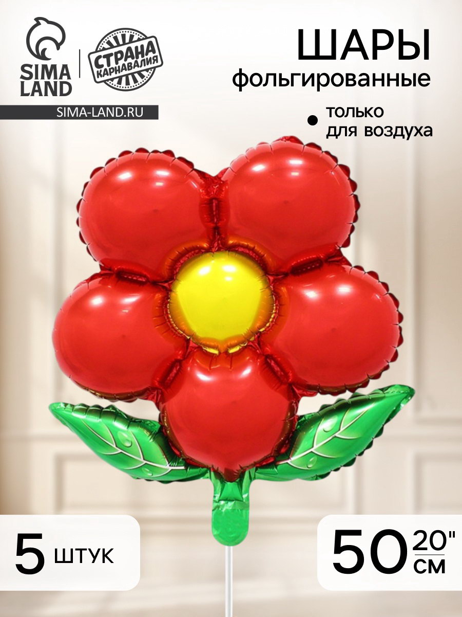 Воздушный шар фольгированный 20""Цветок", красный, набор 5 шт., 15x20x0.3 см., Страна Карнавалия, Китай