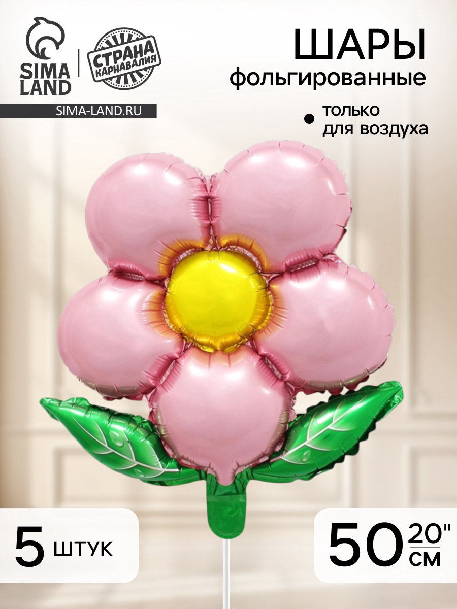 Воздушный шар фольгированный 20""Цветок", розовый, набор 5 шт., 15x20x0.3 см., Страна Карнавалия, Китай