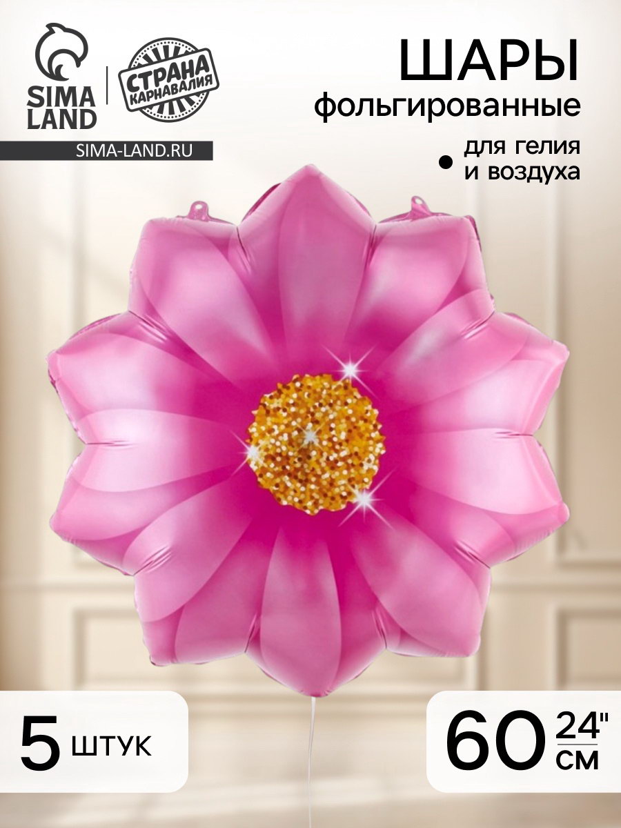 Воздушный шар фольгированный 24""Розовая гербера", набор 5 шт., 15x20x0.3 см., Страна Карнавалия, Китай