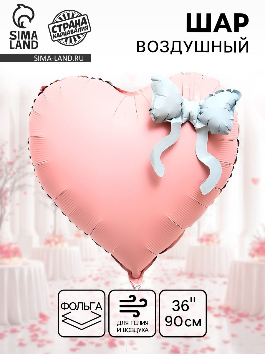 Воздушный шар фольгированный 36""Розовое сердце с бантом", 57x90x0.2 см., Страна Карнавалия, Китай