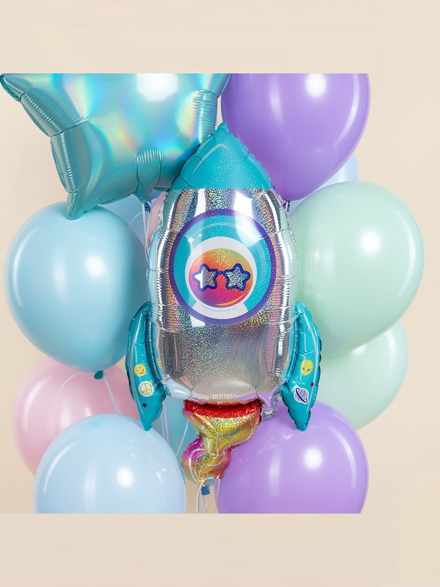 Воздушный шар фольгированный 29""Космическая ракета", голография, FALALI, Китай