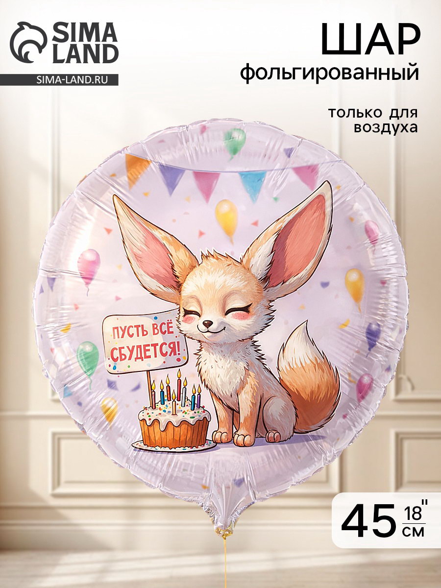 Воздушный шар фольгированный 18""Пусть всё сбудется. Лиса Фенек", Весёлая Затея, Китай