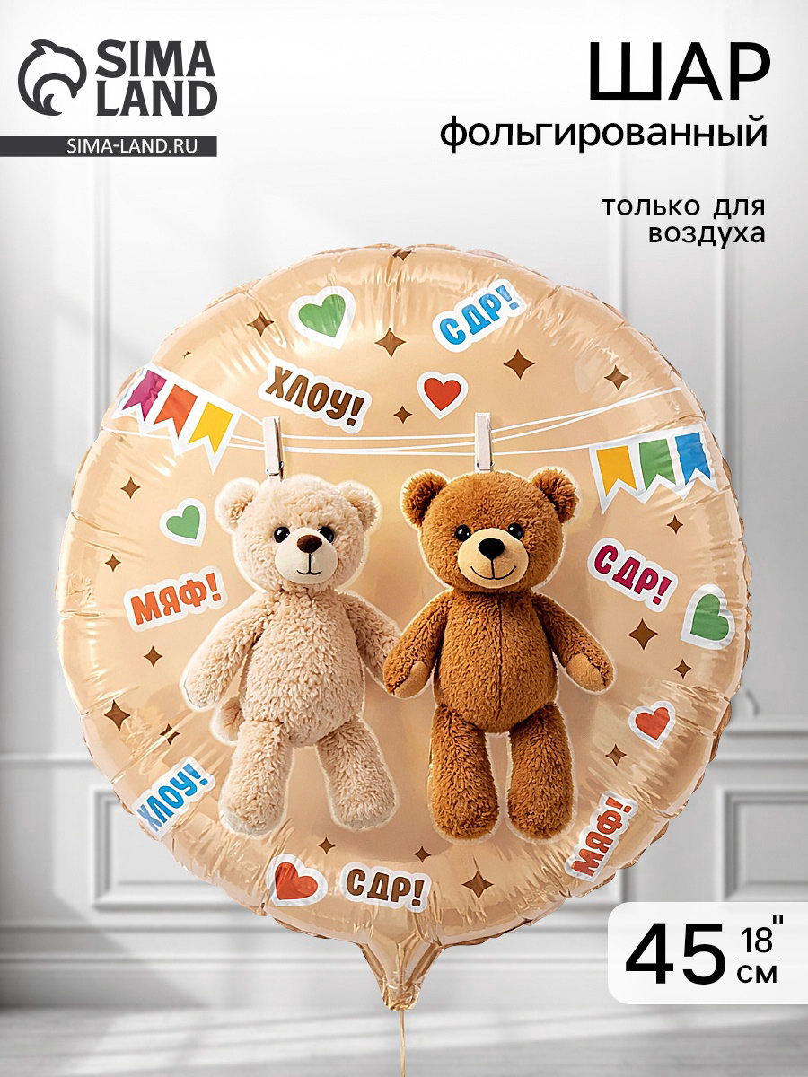 Воздушный шар фольгированный 18""Мишки на прищепках", Весёлая Затея, Китай