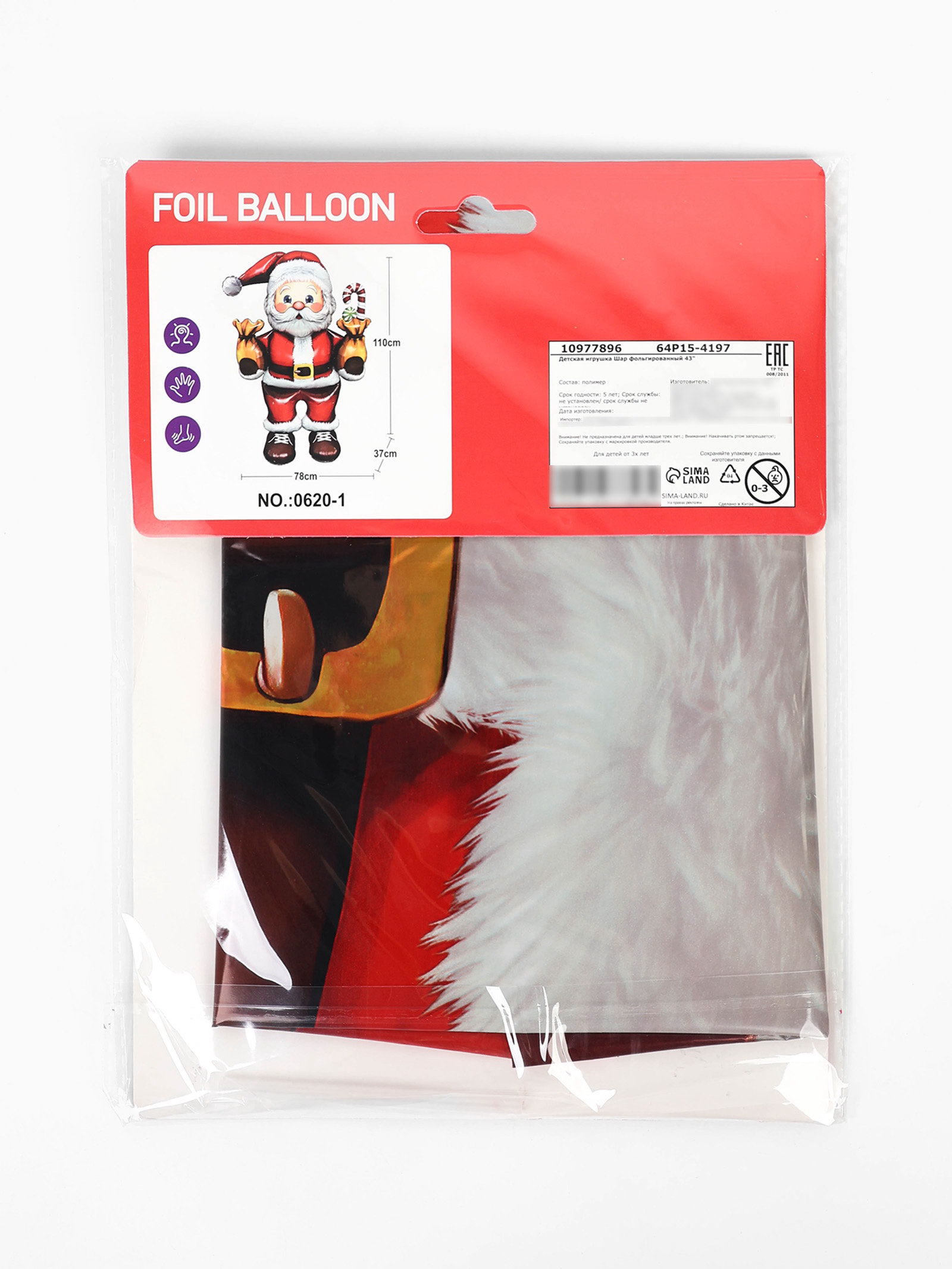 Воздушный шар фольгированный 3D 43""Дед мороз с подарками" под воздух, 16x22x0.5 см., Страна Карнавалия, Китай