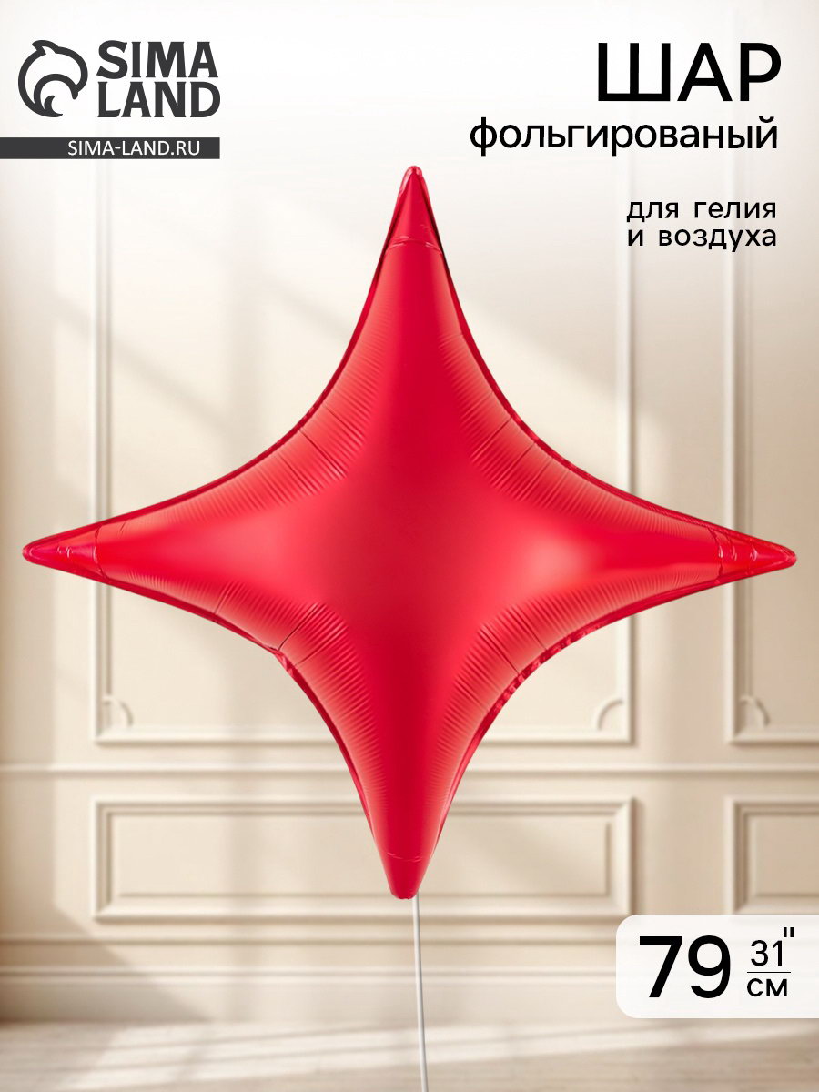 Воздушный шар фольгированный 31"Звезда 4-х конечная "Сириус, цвет красный сатин", FALALI, Китай