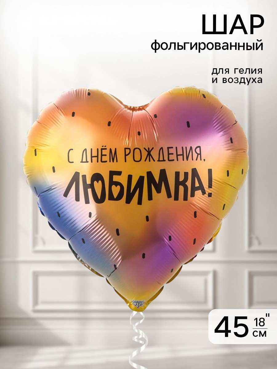 Надувка шара: Воздухом, Гелием Размер упаковки: 10 x 0.3 x 20.5 см. tnved: 9503010000 Температурное ограничение: Нет Диаметр, дюйм: 18 Адресат: Имениннику/Имениннице Цвет: Разноцветный Индивидуальная упаковка: Да Наличие клапана: Да Тематика рисунка: День Рождения Набор: Нет Рисунок: Да Вид шара: Сердце Оттенок: Глянец Фольгированный воздушный шар "Любимка" – украшение для любого мероприятия! Он добавит оригинальности и яркости празднику. Преимущества: