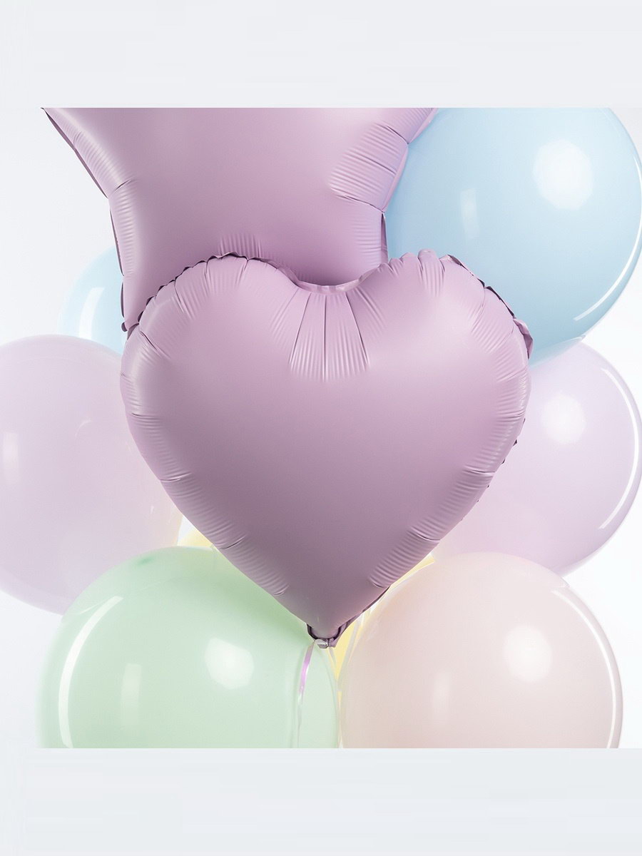 Воздушный шар фольгированный 18""Сердце", сиреневый сатин, набор 5 шт., 45x45x0.1 см., Страна Карнавалия, Китай