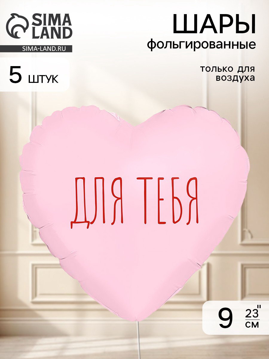 Воздушный шар фольгированный 9"Сердце "Для тебя" пыльная роза, набор 5 штук, AGURA, Россия