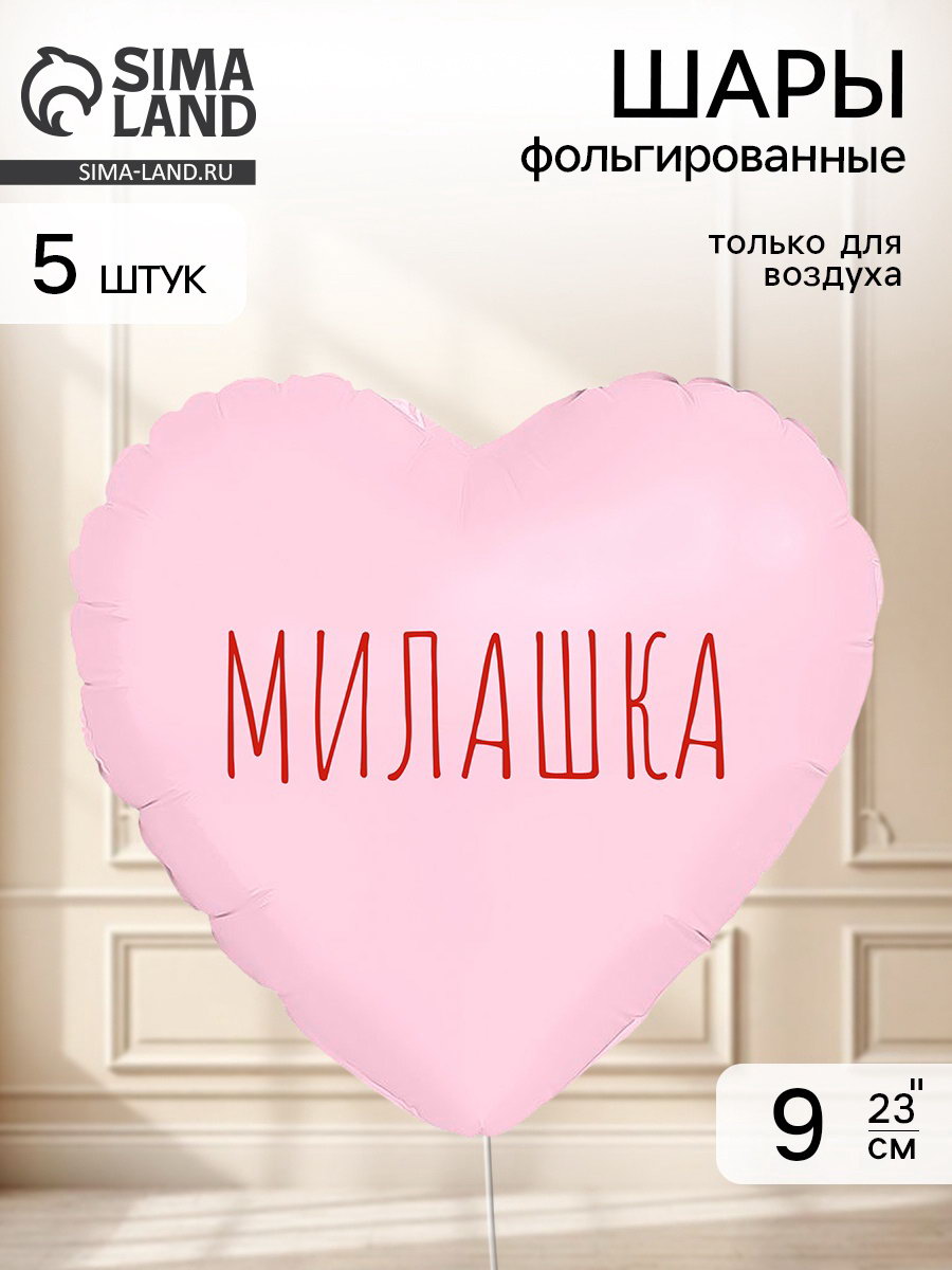 Воздушный шар фольгированный 9"Сердце "Милашка" пыльная роза, набор 5 штук, AGURA, Россия