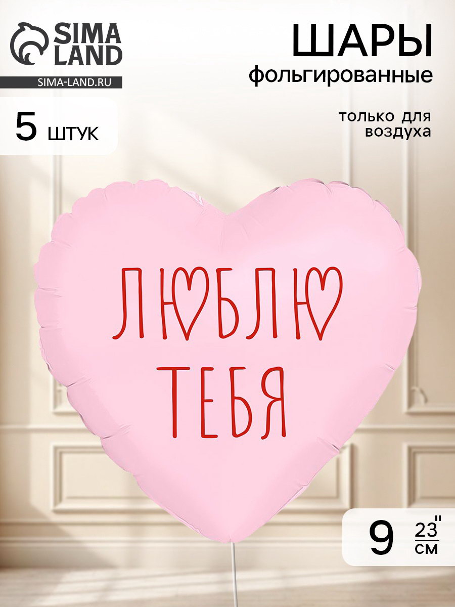 Воздушный шар фольгированный 9"Сердце "Я люблю тебя" пыльная роза, набор 5 штук, AGURA, Россия
