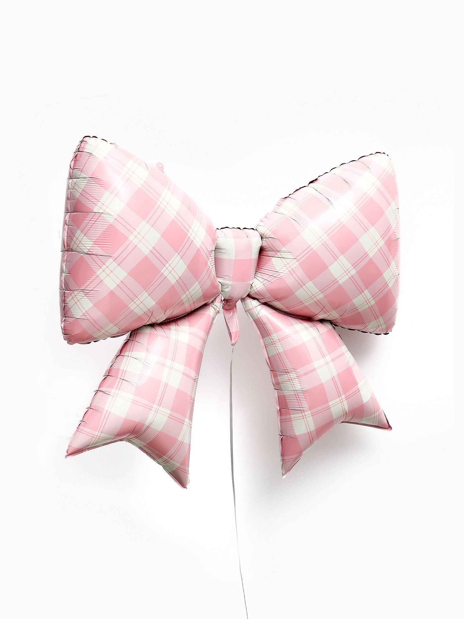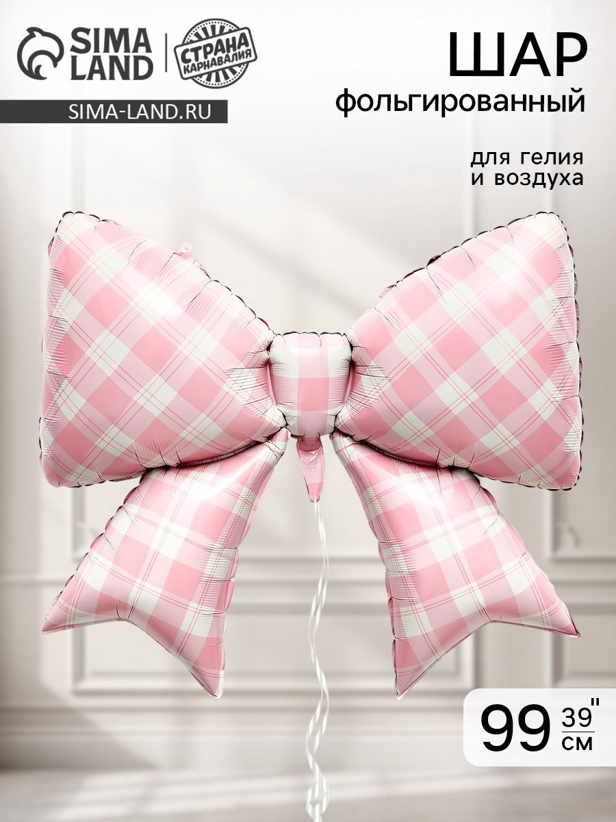 Воздушный шар фольгированный 39""Бант в клетку", розовый, 99x76x0.1 см., Страна Карнавалия, Китай