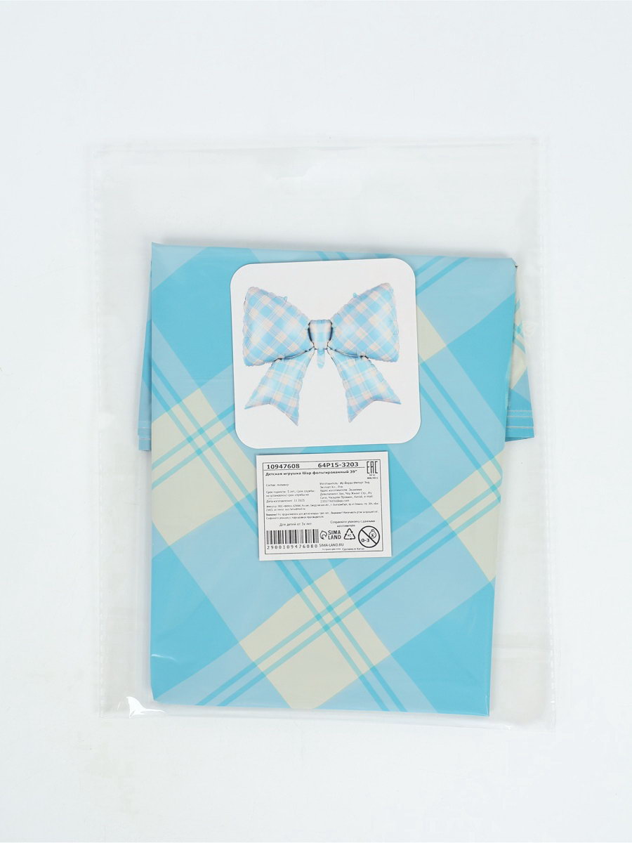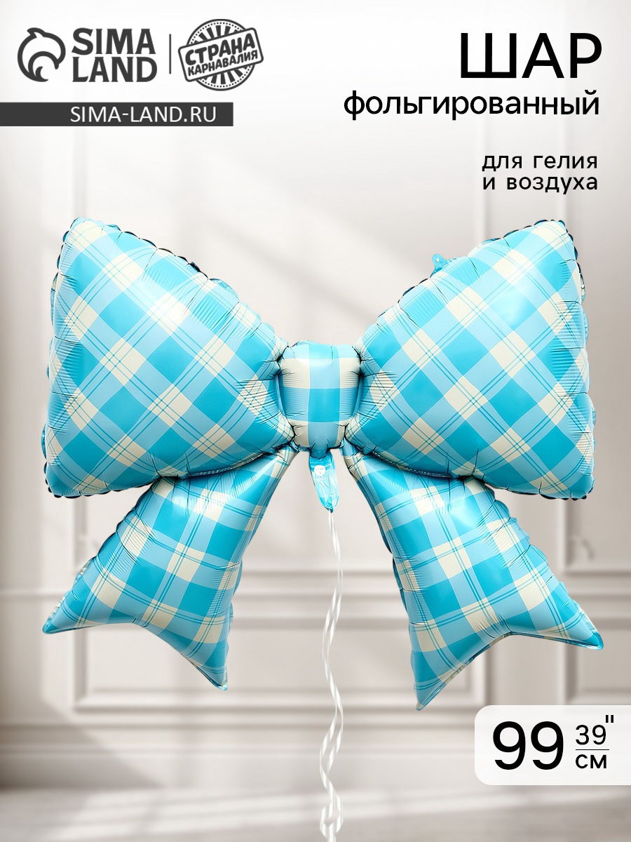 Воздушный шар фольгированный 39""Бант в клетку", голубой, 99x76x0.1 см., Страна Карнавалия, Китай