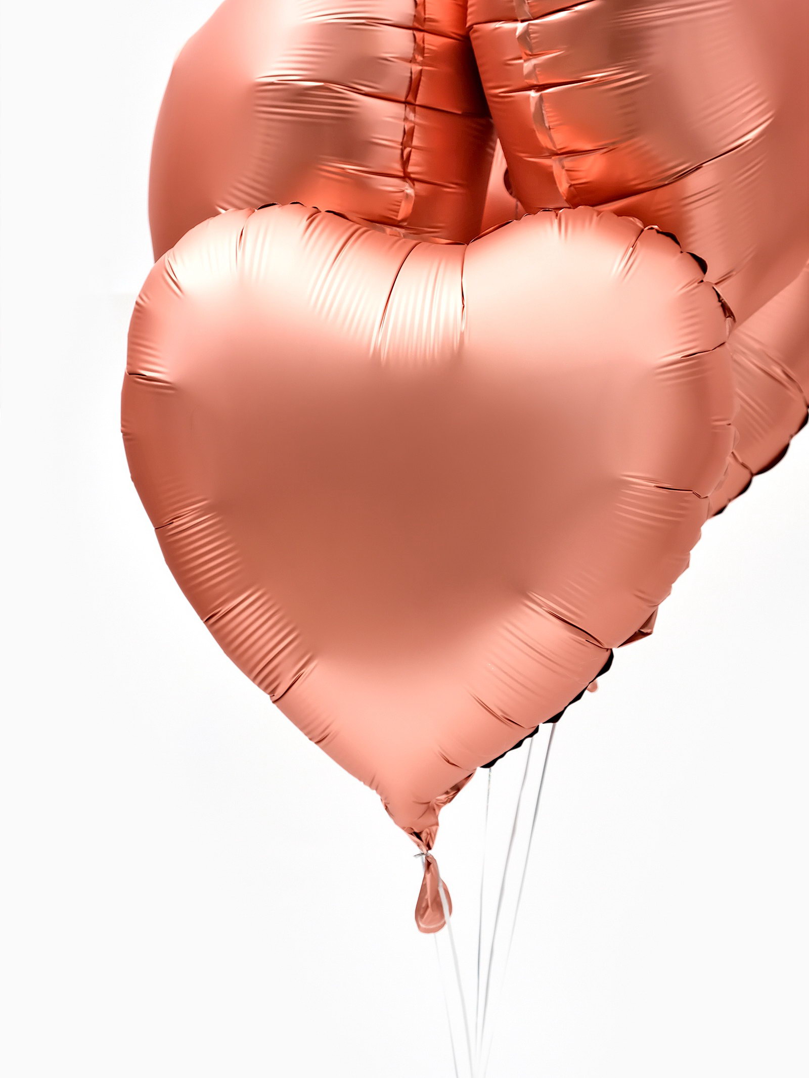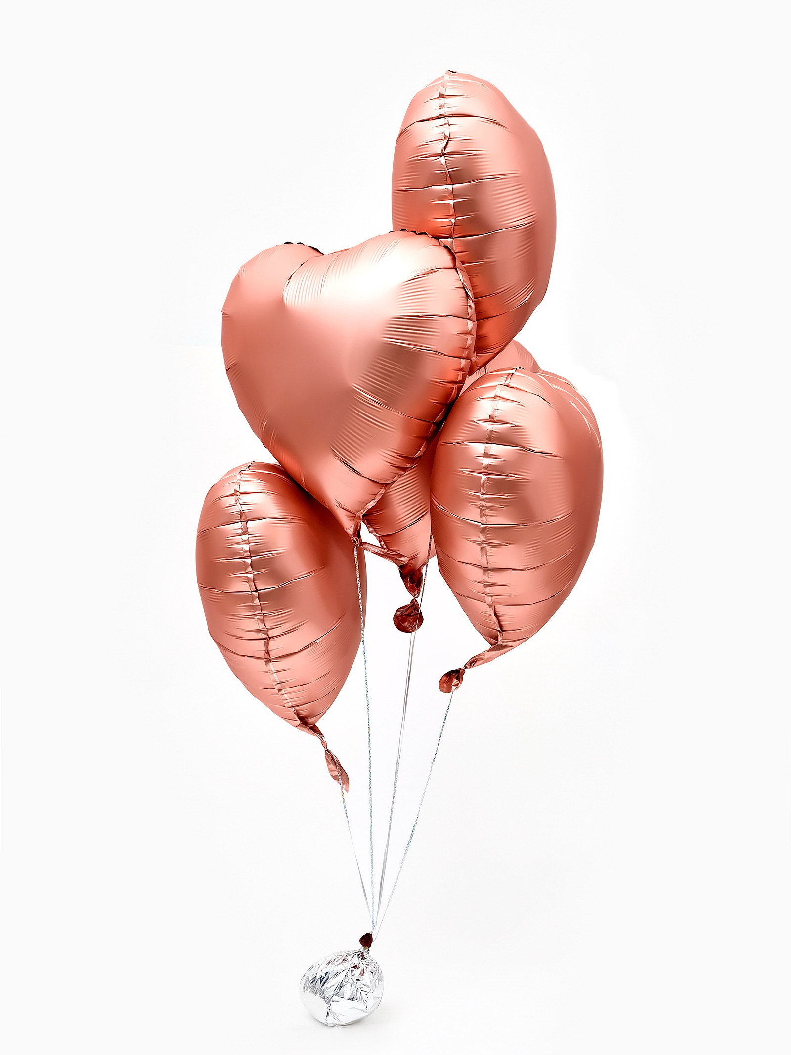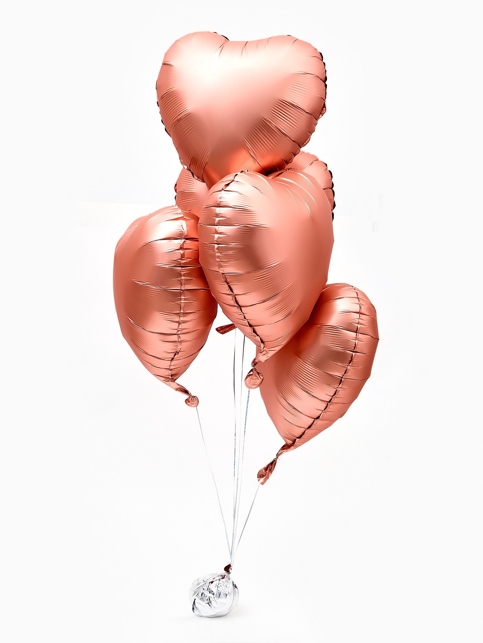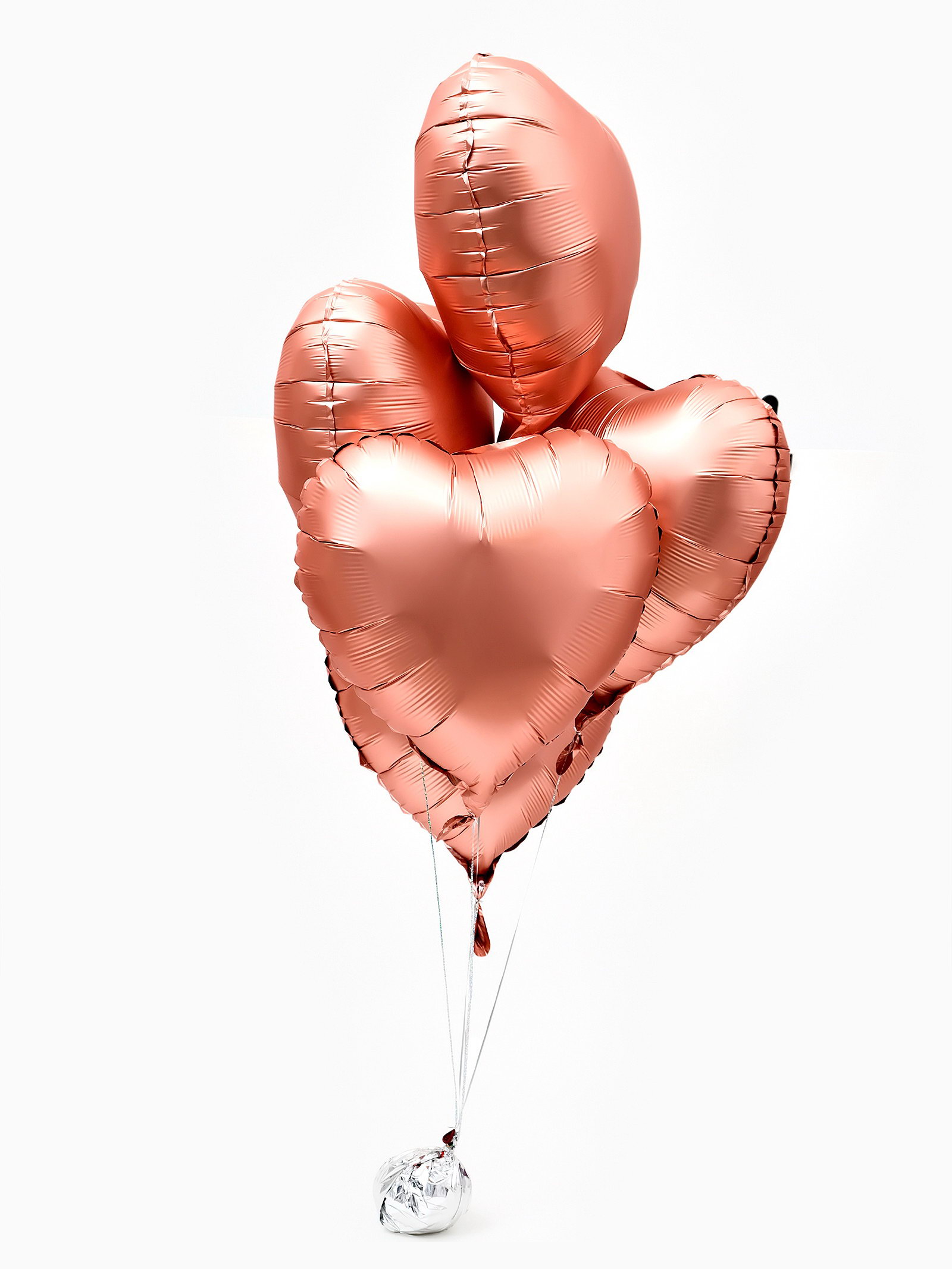 Воздушный шар фольгированный 18""Сердце", розовое золото сатин, набор 5 шт., 45x45x0.1 см., Страна Карнавалия, Китай
