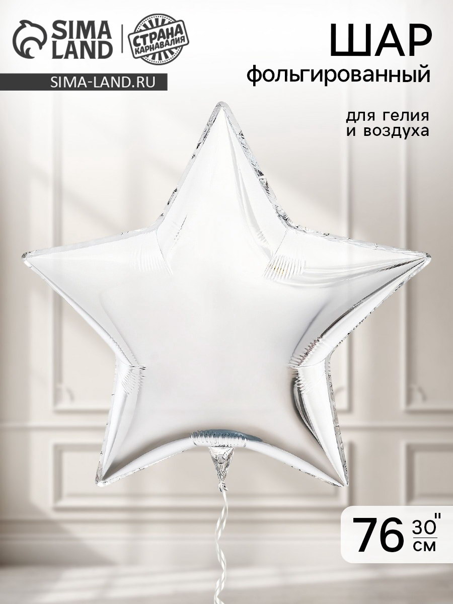 Воздушный шар фольгированный 30""Звезда", серебро, 13.5x19.5x0.4 см., Страна Карнавалия, Китай