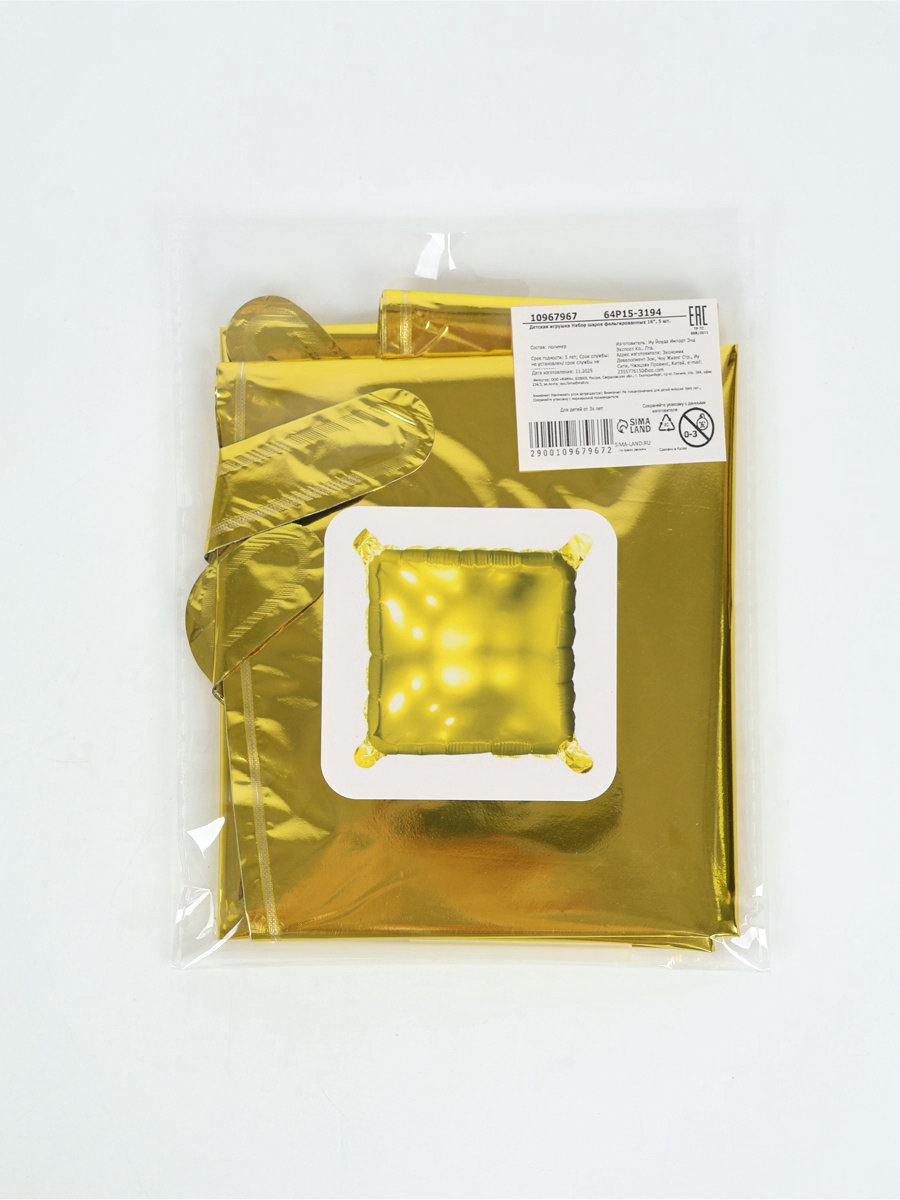 Воздушный шар фольгированный блок 16""Золотой", набор 5 штук, 13x15x0.2 см., Страна Карнавалия, Китай
