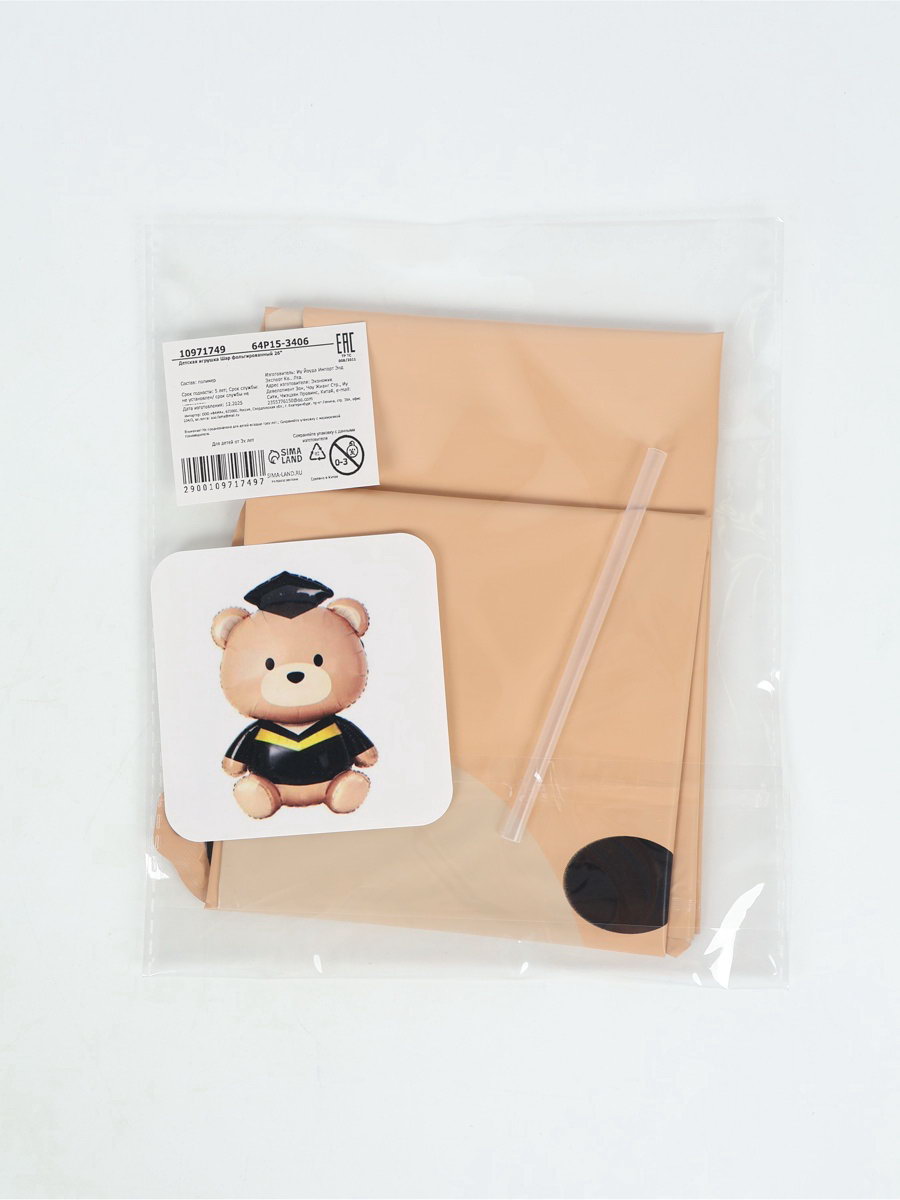 Воздушный шар фольгированный 26""Медведь выпускник", 40x65x0.1 см., Страна Карнавалия, Китай