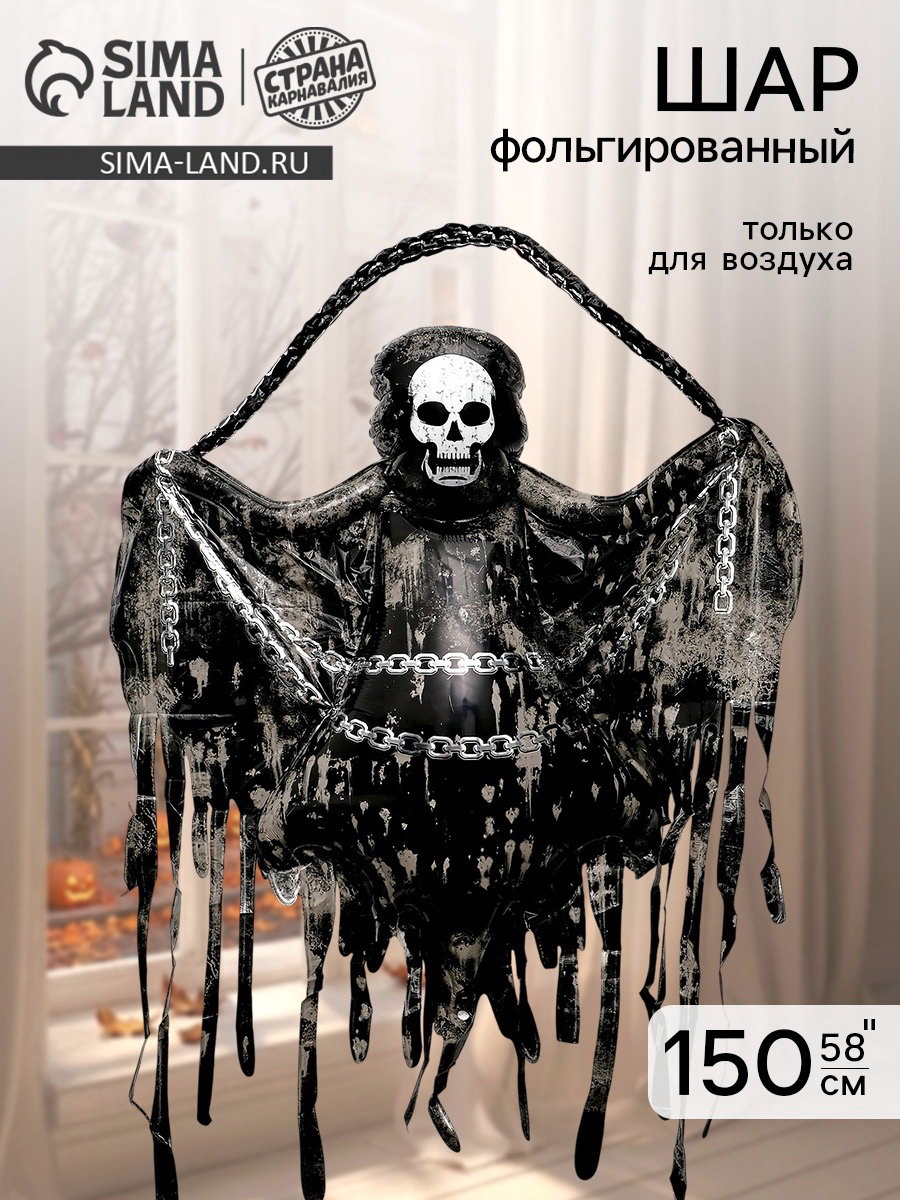 Воздушный шар фольгированный 58""Скелет призрак", 118x150x0.1 см., Страна Карнавалия, Китай