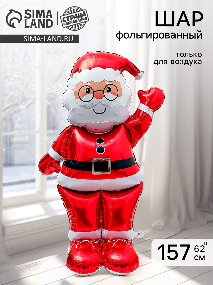 Воздушный шар фольгированный 3D 62""Дед Мороз в красном", только под воздух, 93x156x0.1 см., Страна Карнавалия, Китай