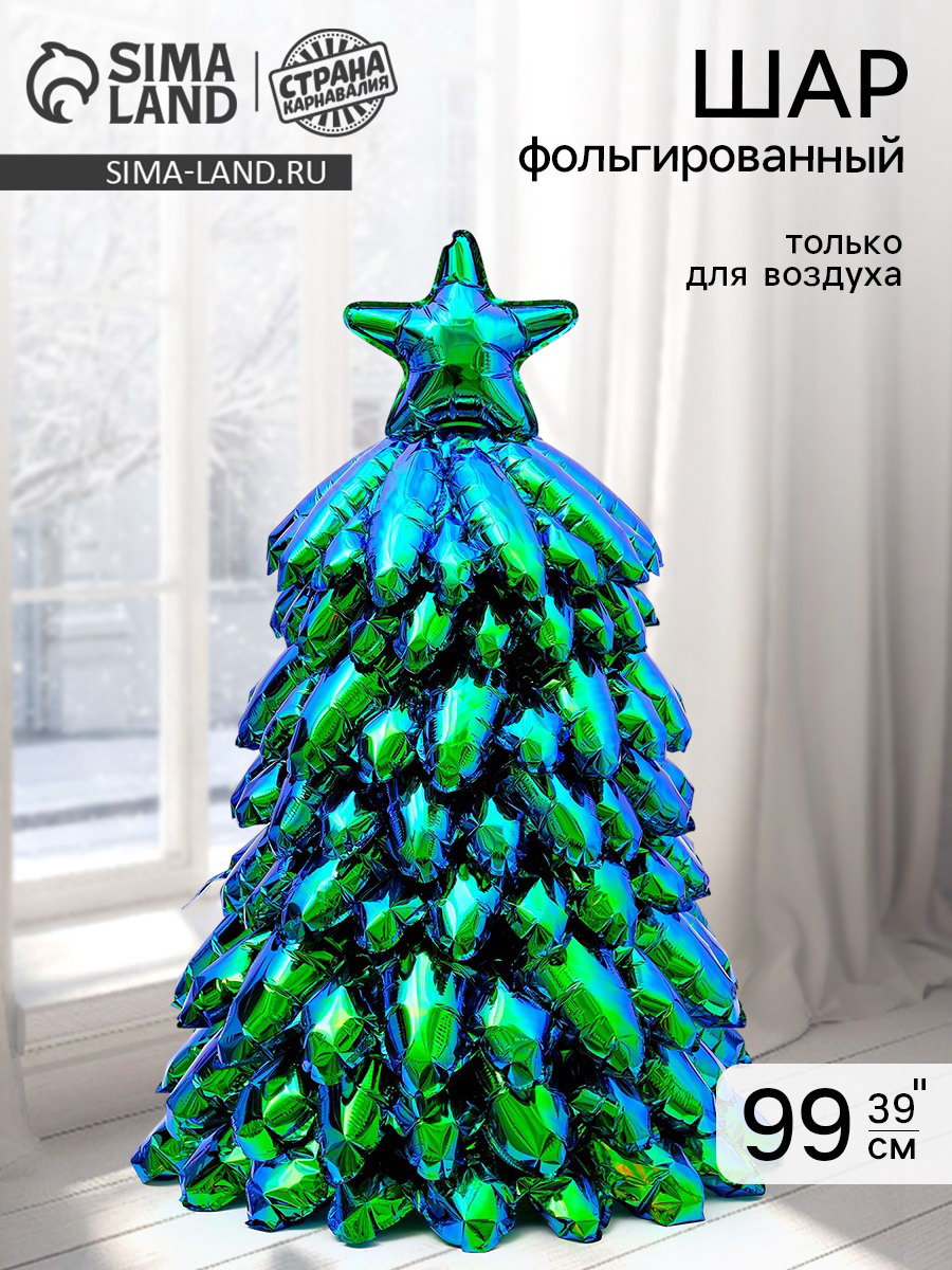 Воздушный шар фольгированный 3D 39""Новогодняя елка" зеленый хамелеон, под воздух, 63x100x0.3 см., Страна Карнавалия, Китай