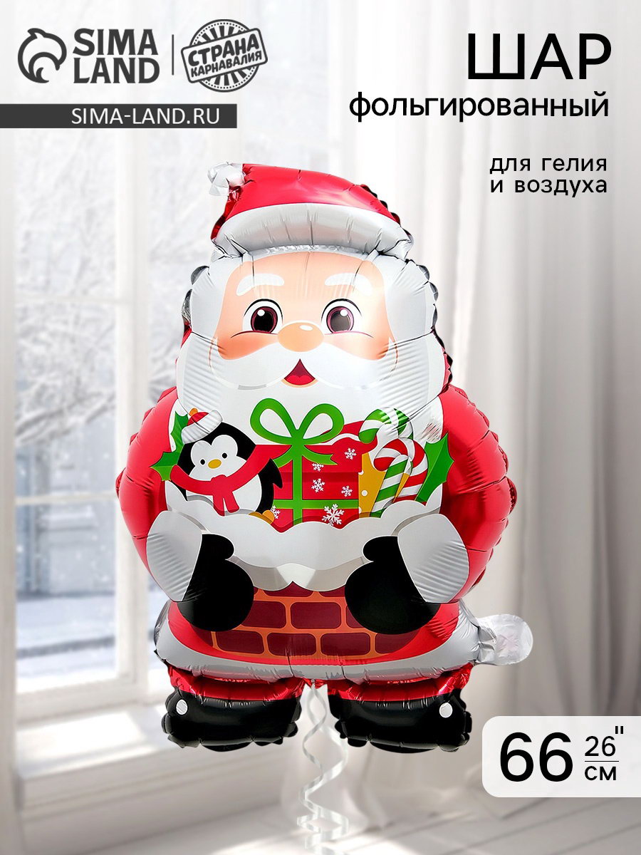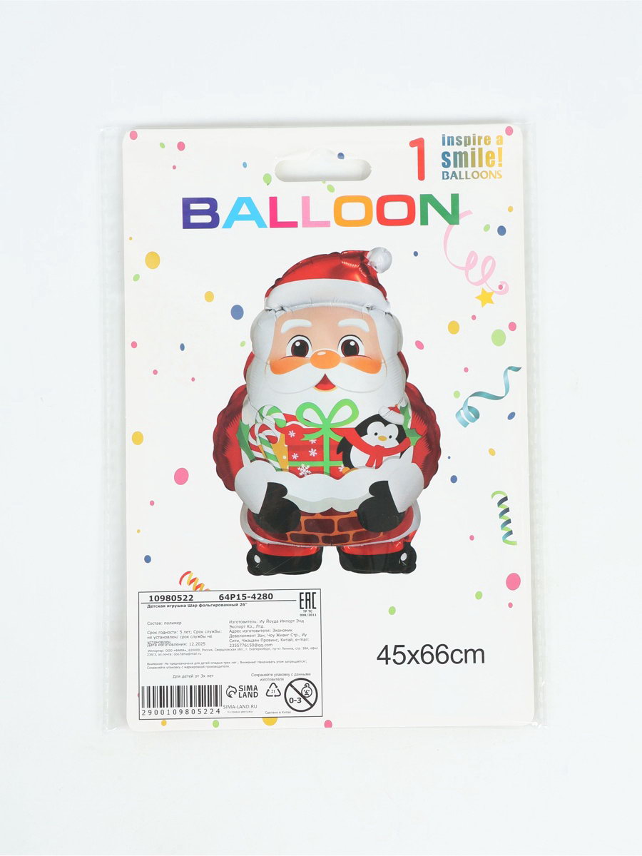 Воздушный шар фольгированный 26""Дед мороз с подарками", 45x66x0.1 см., Страна Карнавалия, Китай