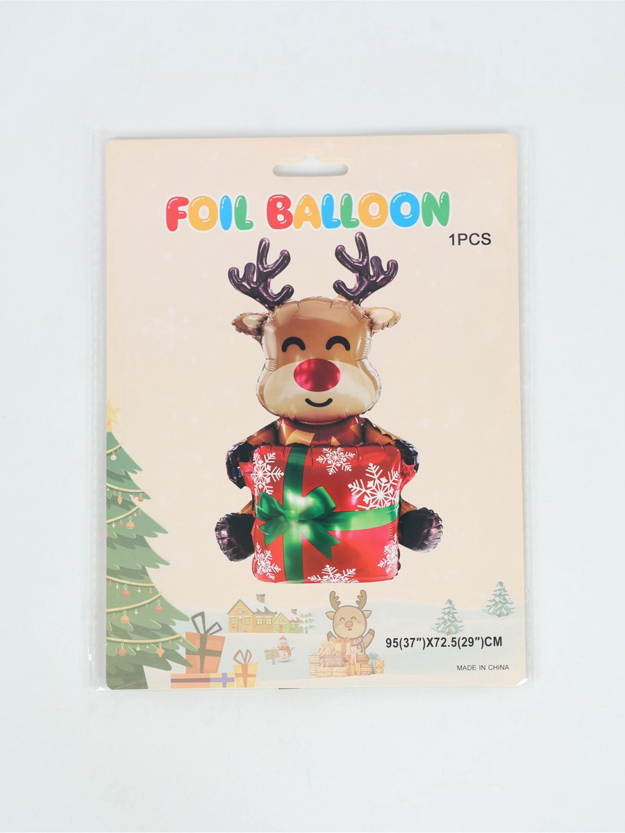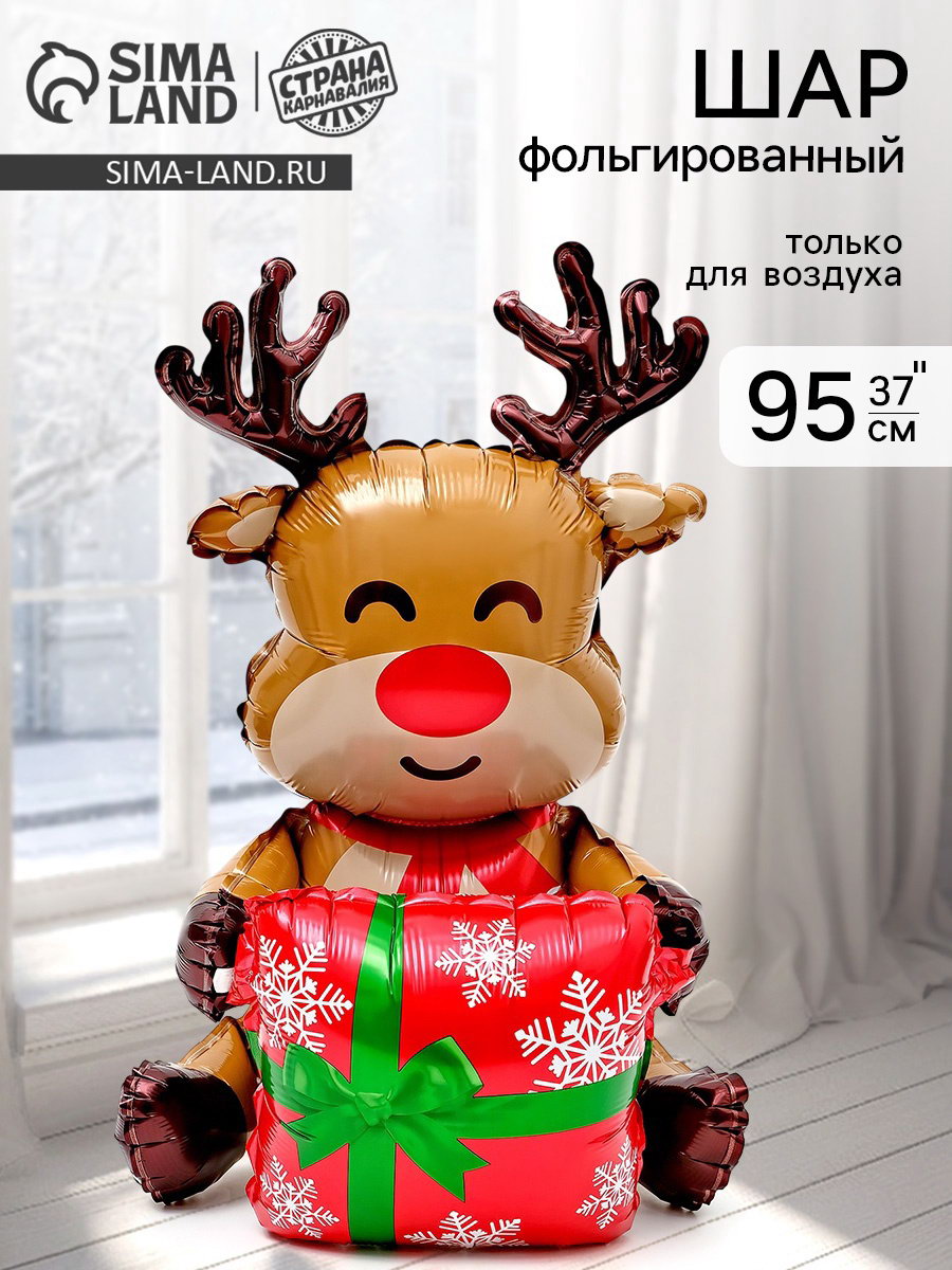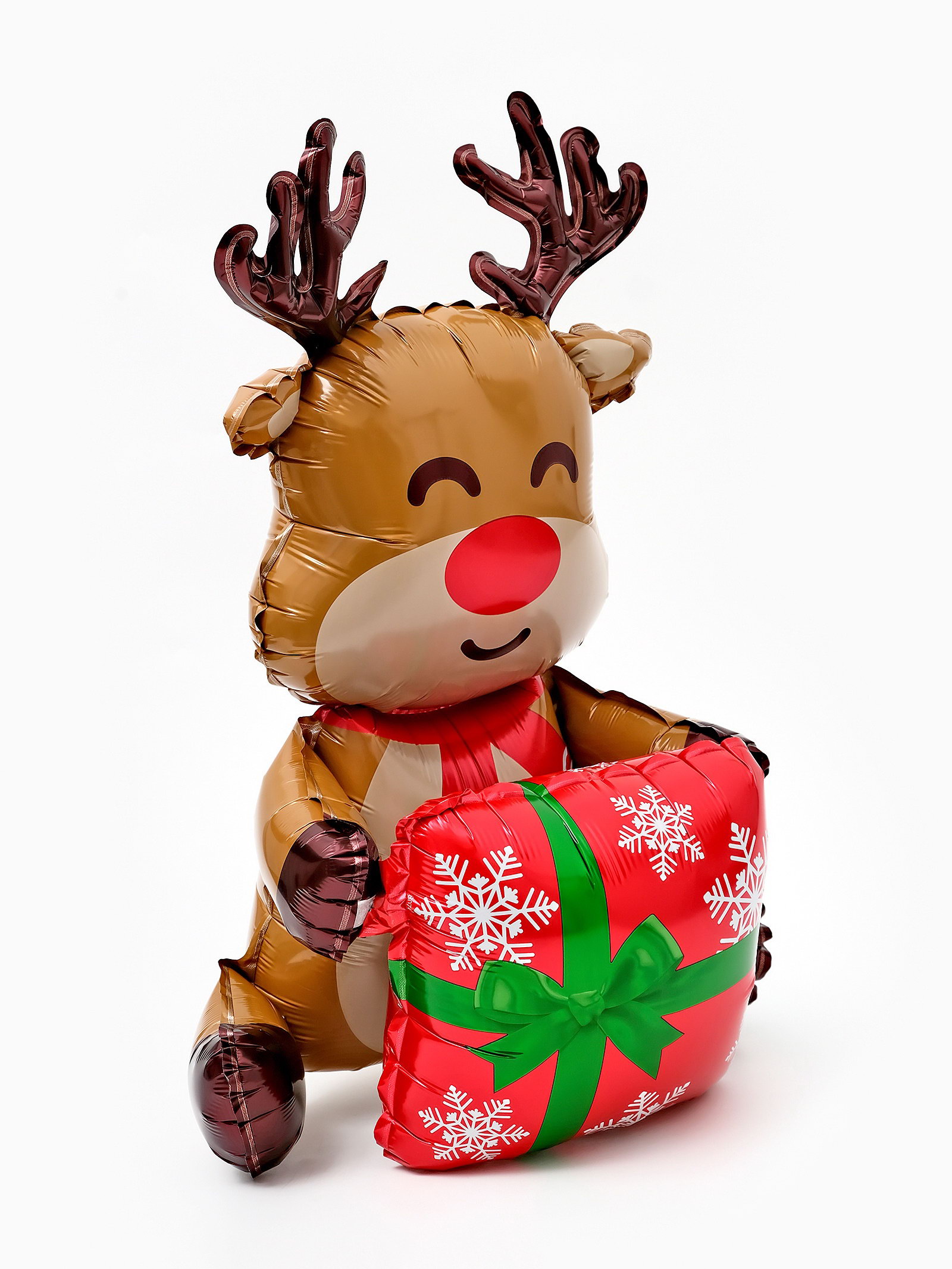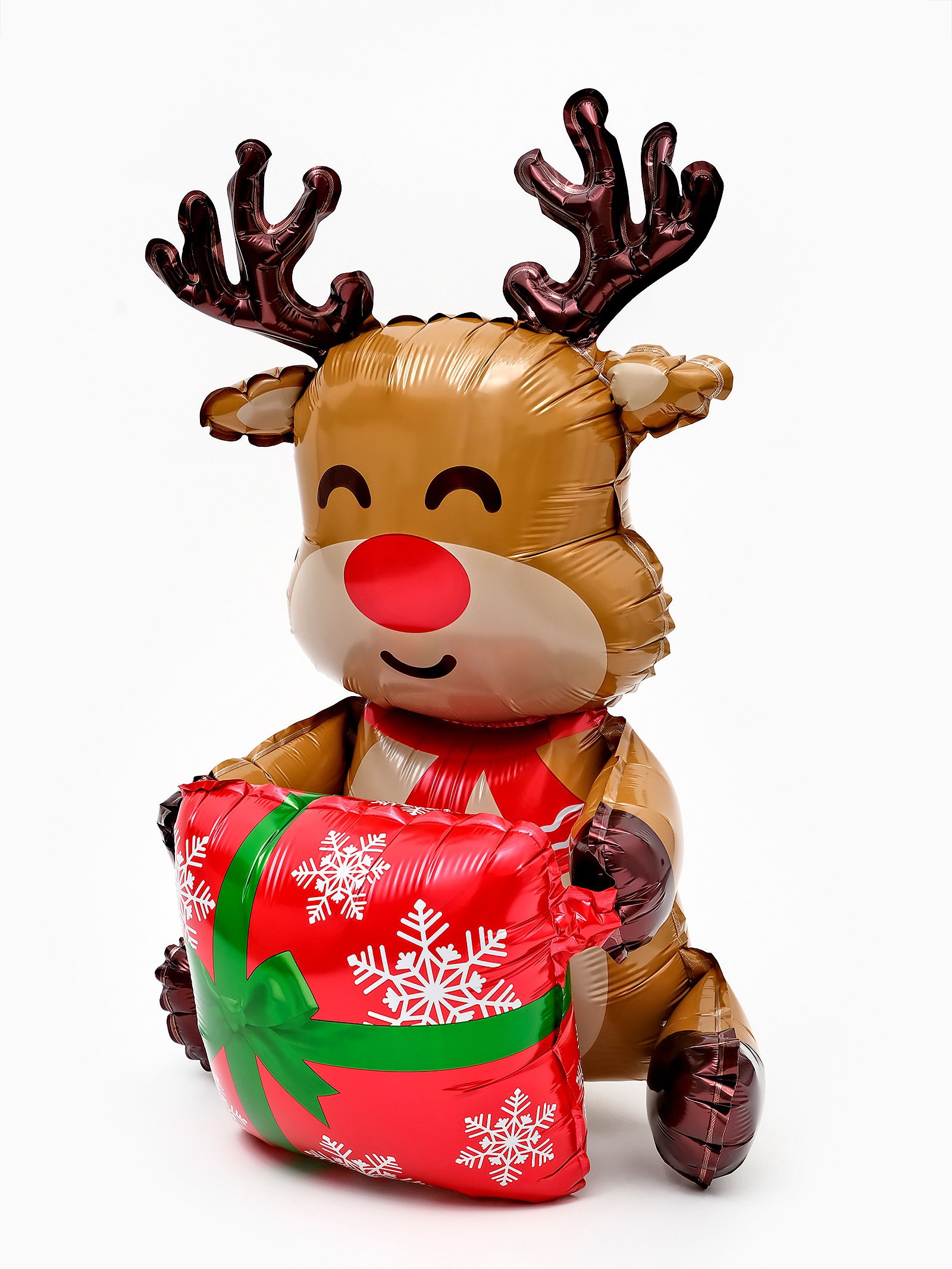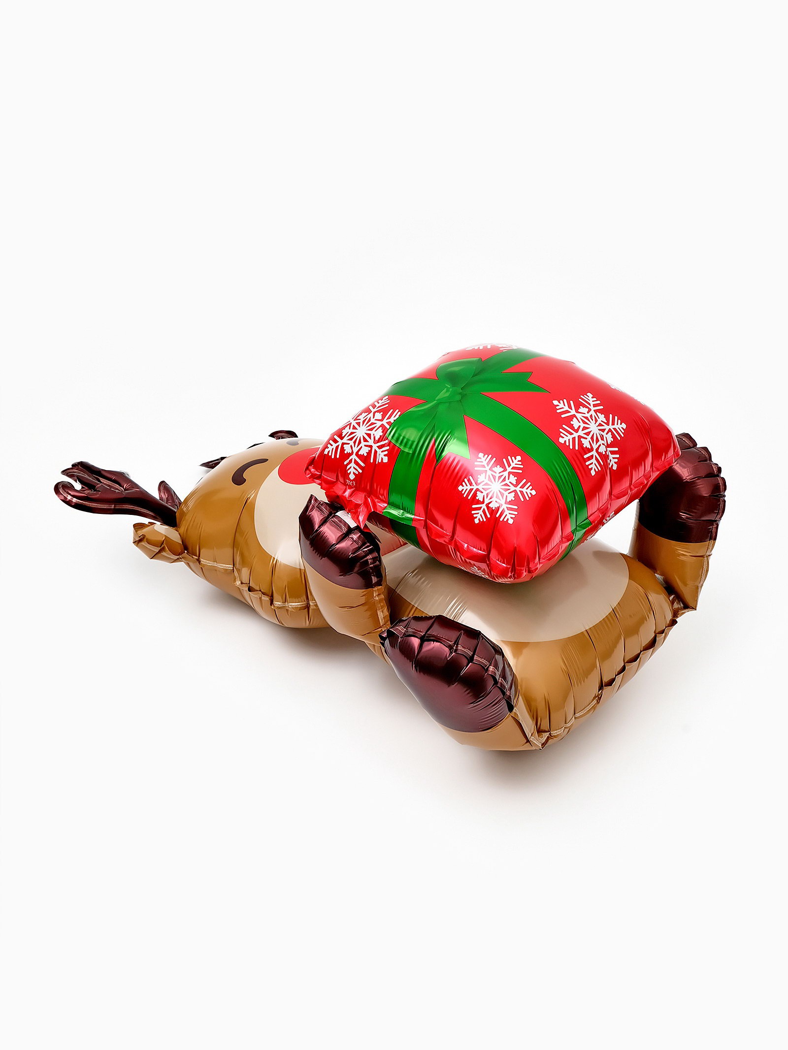 Воздушный шар фольгированный 3D 37". "Олень с подарком", только под воздух, 72.5x95x0.3 см., Страна Карнавалия, Китай