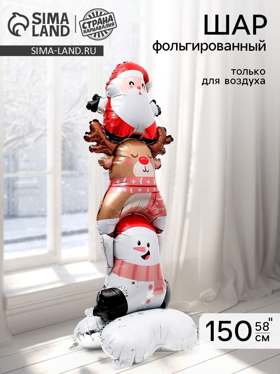 Воздушный шар фольгированный 58""Новогоднее трио", 51x150x0.1 см., Страна Карнавалия, Китай