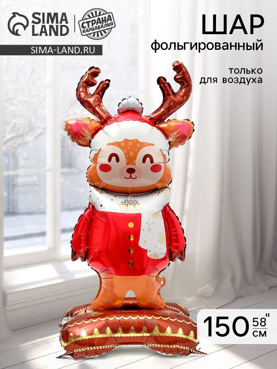 Воздушный шар фольгированный 58""Зимний олень", только под воздух, 66x150x0.1 см., Страна Карнавалия, Китай