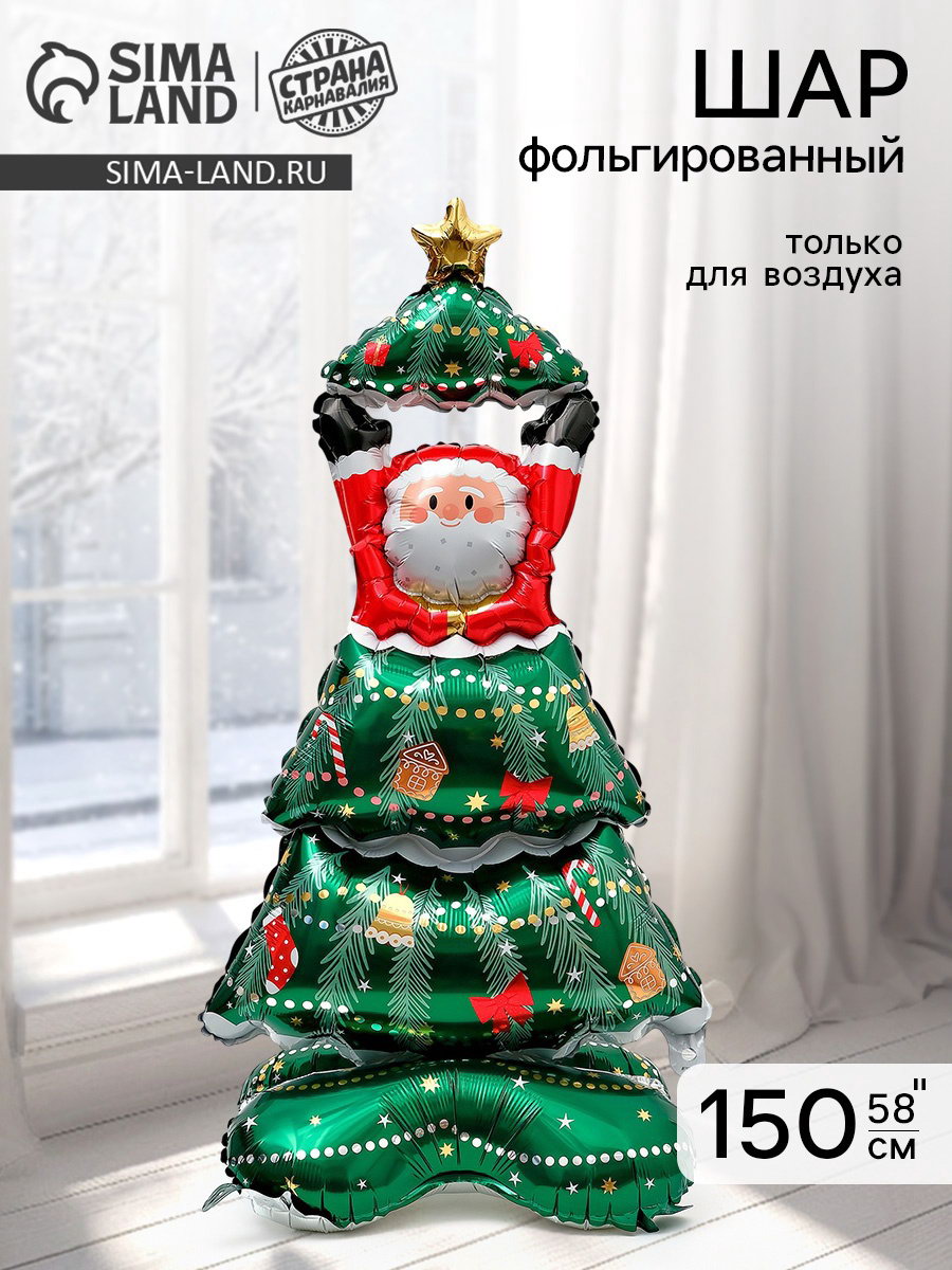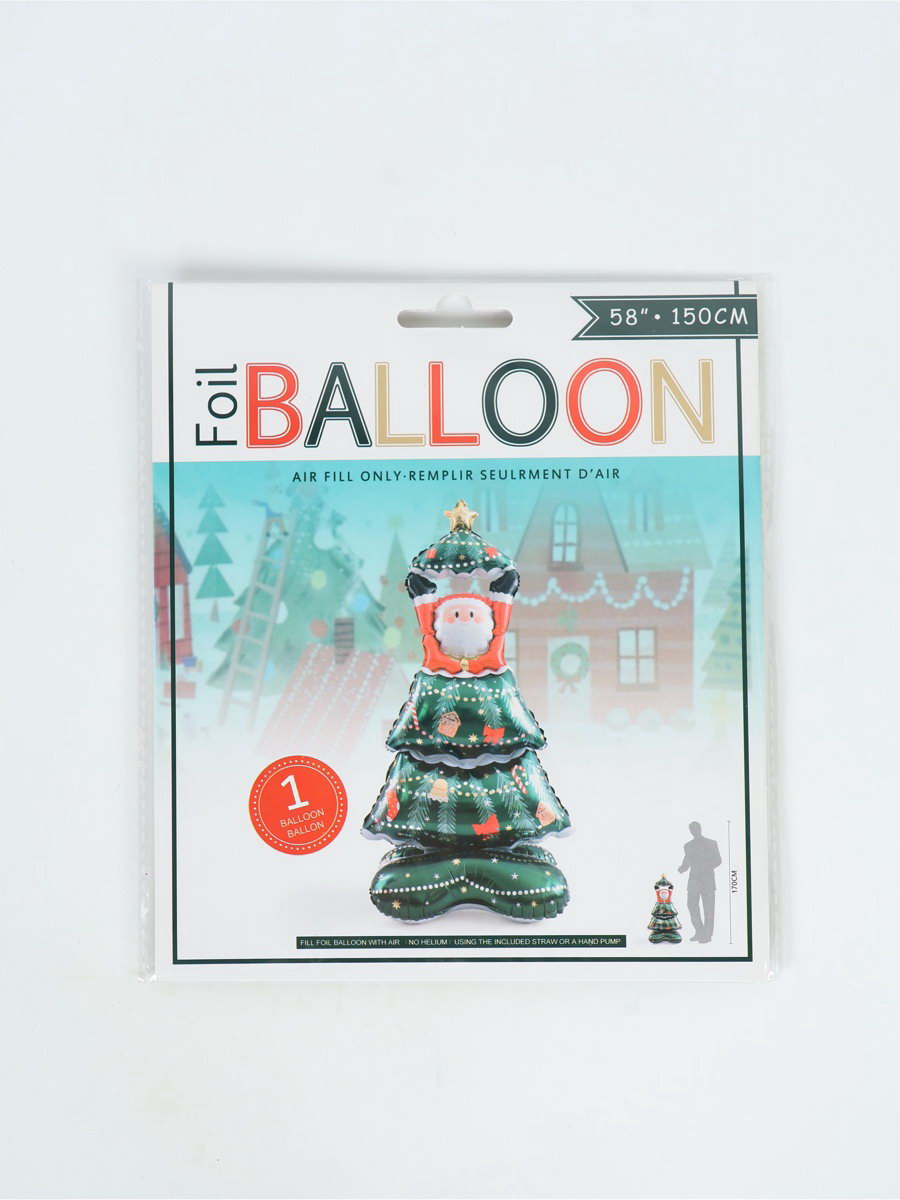 Воздушный шар фольгированный 58""Дед Мороз с елкой", только под воздух, 62x150x0.1 см., Страна Карнавалия, Китай