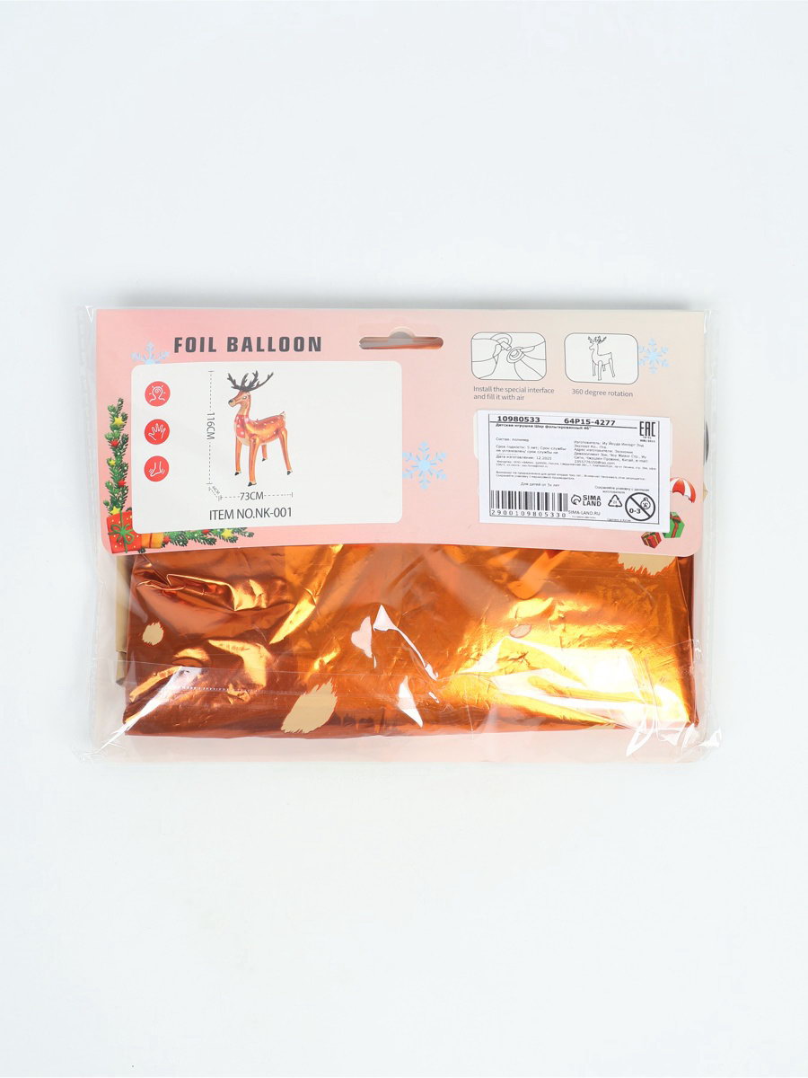 Размер упаковки: 16.5 x 2 x 22 см. tnved: 9503010000 Тематика рисунка: Новый год Надувка шара: Воздухом Вид шара: Фигура Цвет: Коричневый Диаметр, дюйм: 46 Адресат: Без адресата Рисунок: Да Оттенок: Глянец Набор: Нет Наличие клапана: Да Индивидуальная упаковка: Да Персонажи: Олень | ||
