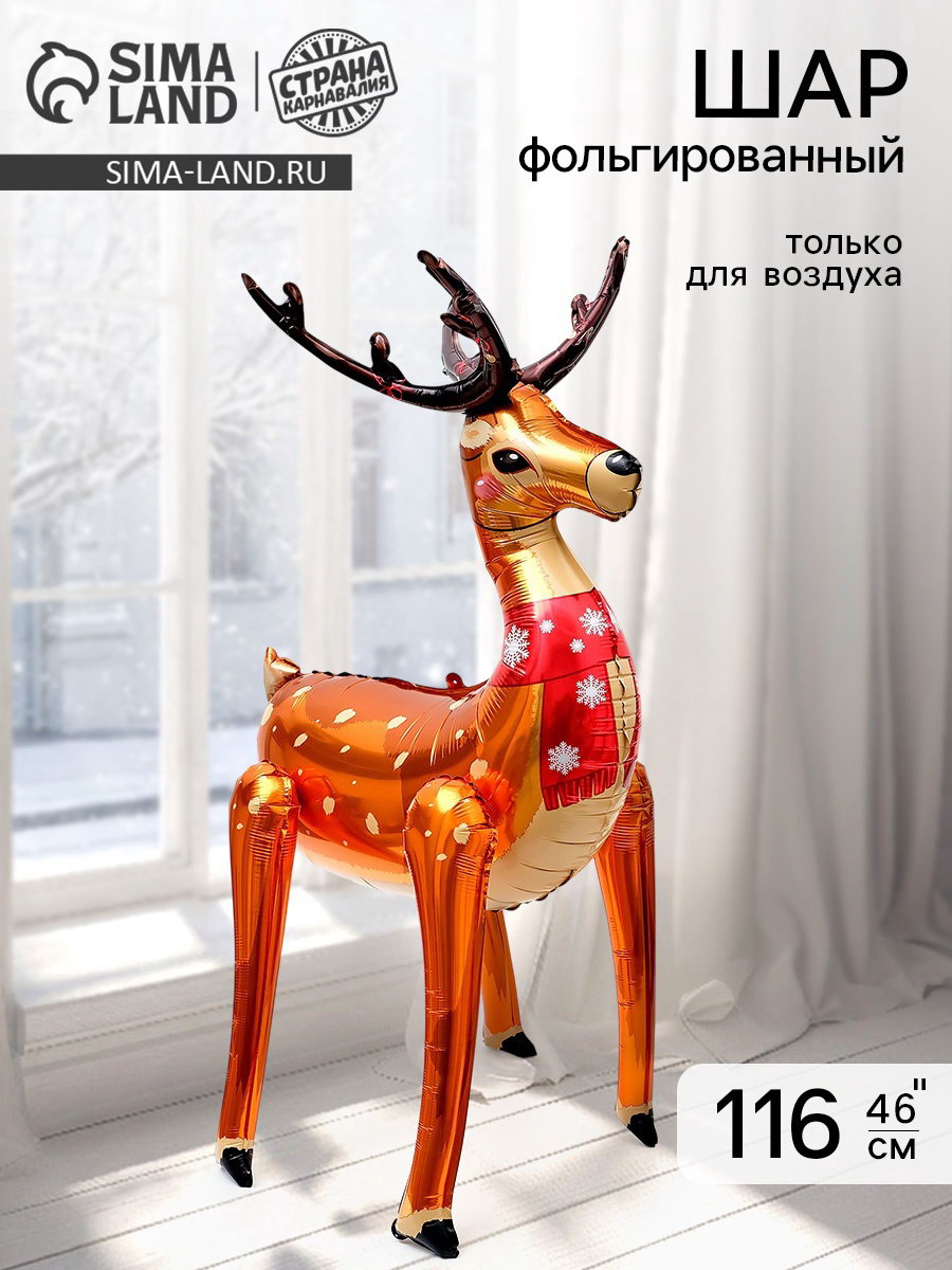 Воздушный шар фольгированный 3D 46""Олень", только под воздух, 73x116x0.1 см., Страна Карнавалия, Китай