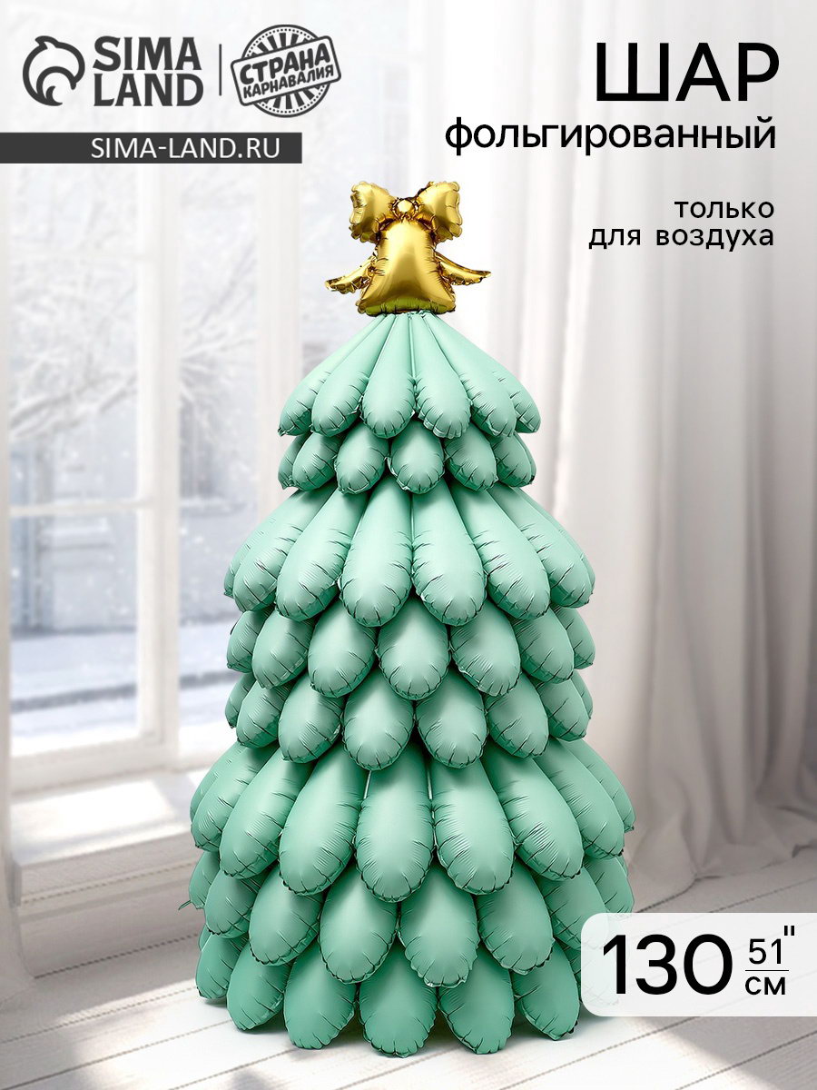Воздушный шар фольгированный 3D 51""Елка", голубой сатин, только под воздух, 72x130x0.3 см., Страна Карнавалия, Китай