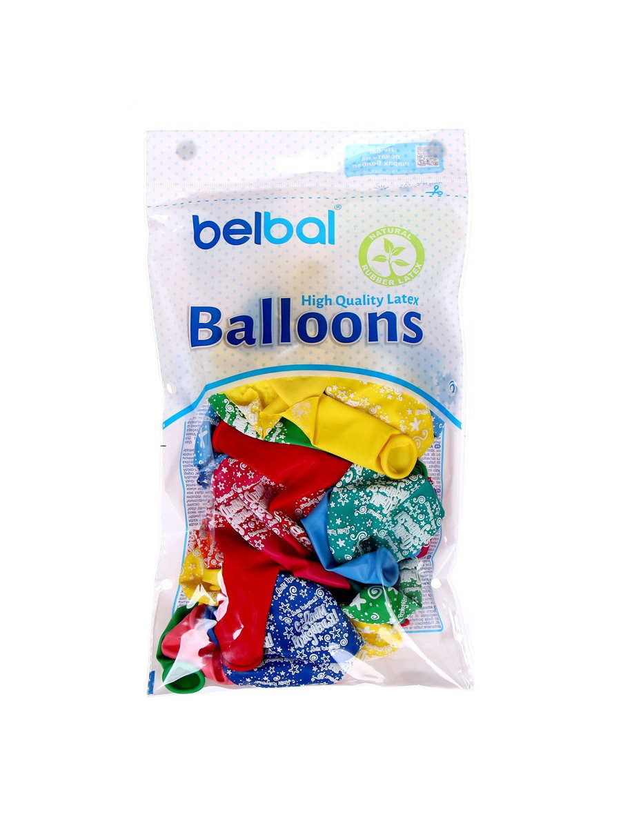 Воздушные шары латексные 14""С днём рождения! Звёзды", 25 шт., пастель, МИКС, 35.5 см., BELBAL, Бельгия