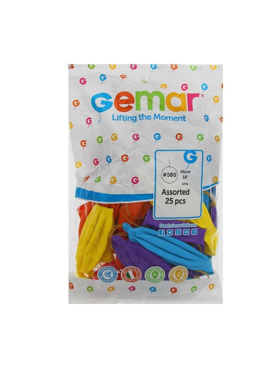 Воздушные шары латексные 18", панч-болл, пастель, набор 25 шт., МИКС, 20x30x2 см., GEMAR, Италия