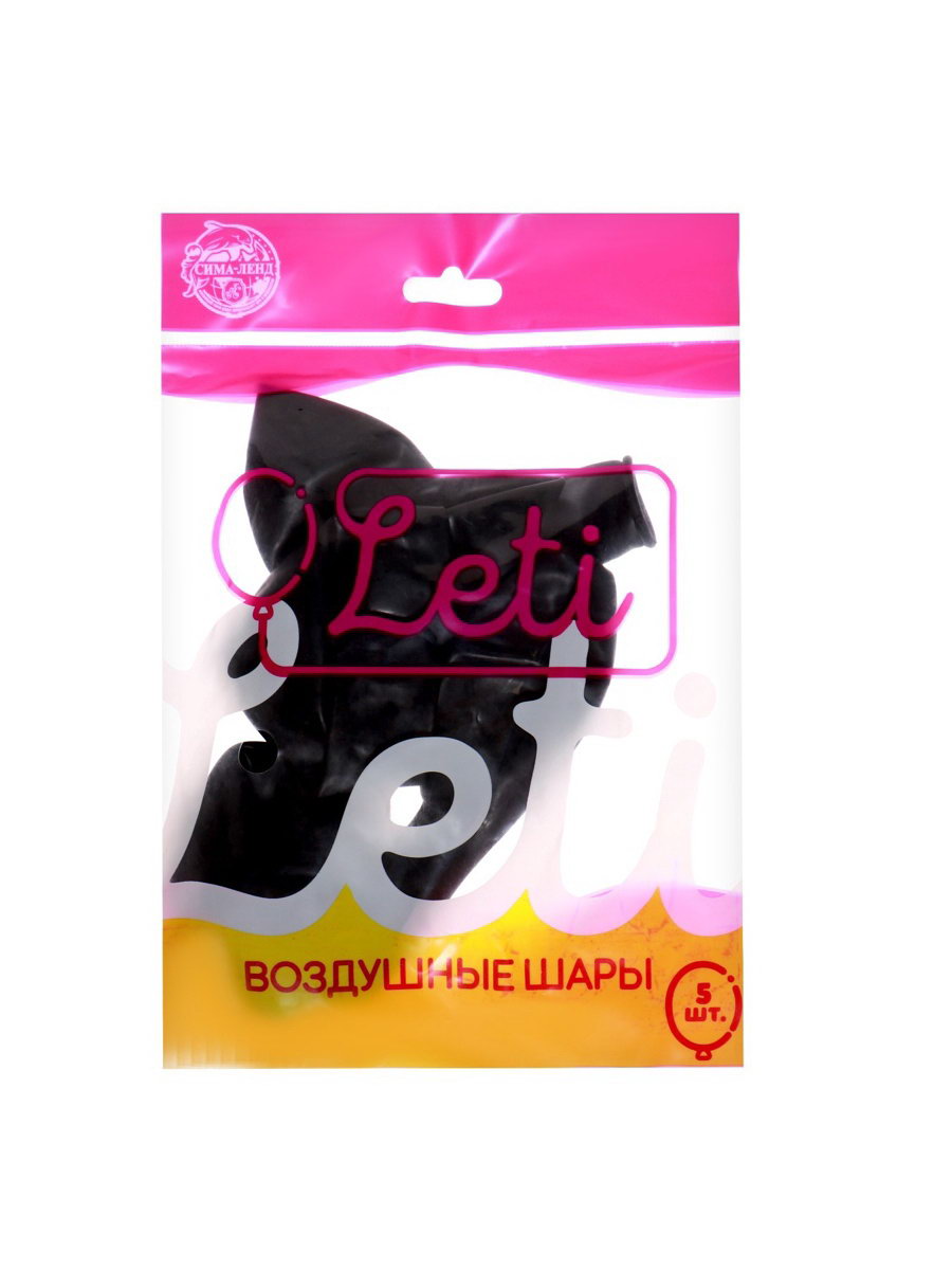 Воздушные шары латексные 12", пастель, 5 шт., чёрные, 8x13x10 см., LETI, Китай