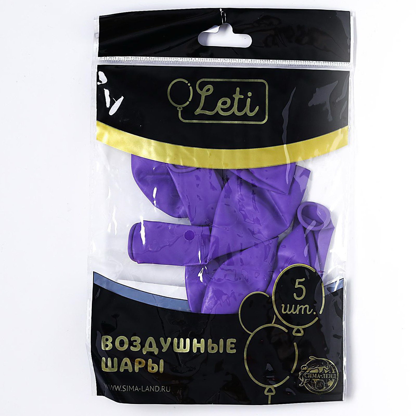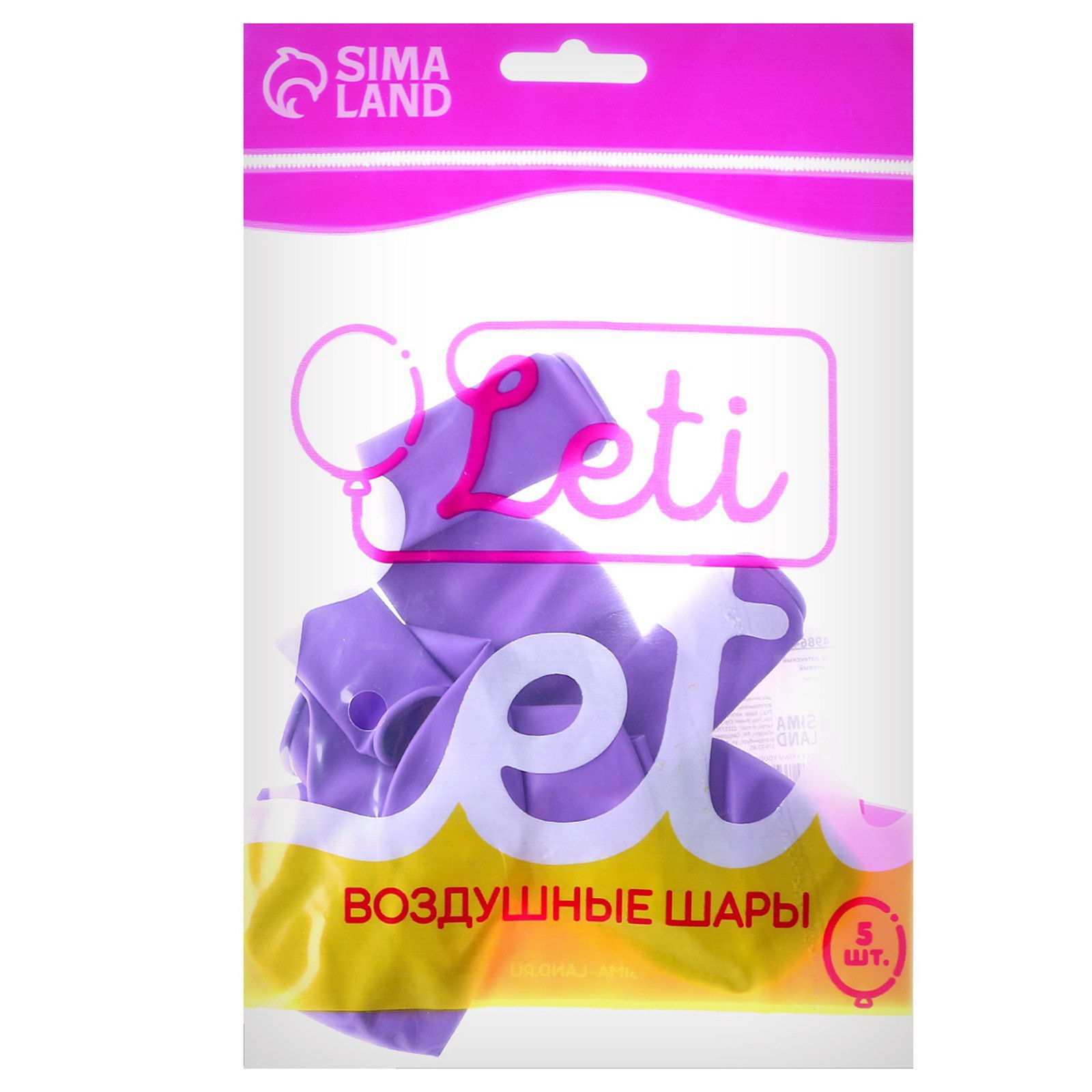 Шар латексный 12", пастель, набор 5 шт., цвет сиреневый, 8x13x10 см., LETI, Китай