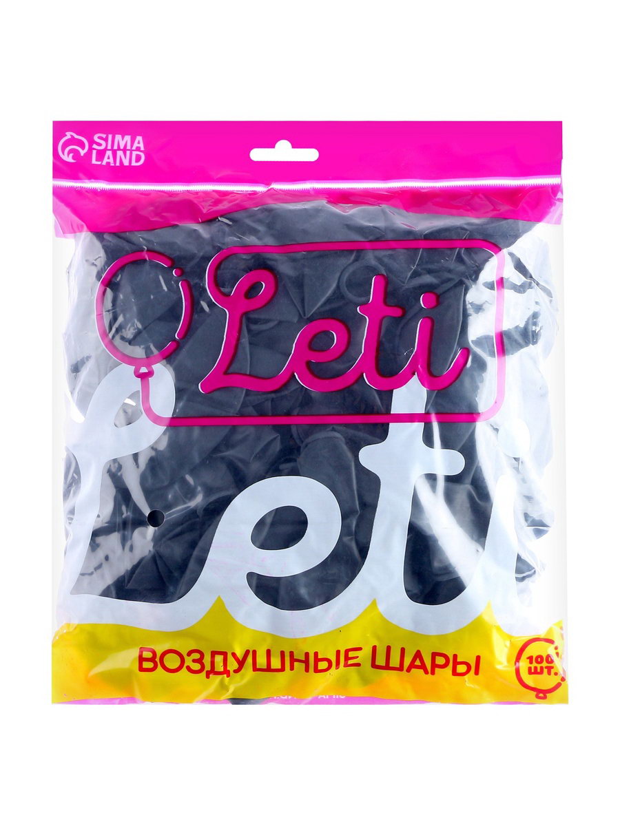 Воздушные шары латексные 12", пастель, 100 шт., чёрные, 8x13x10 см., LETI, Китай