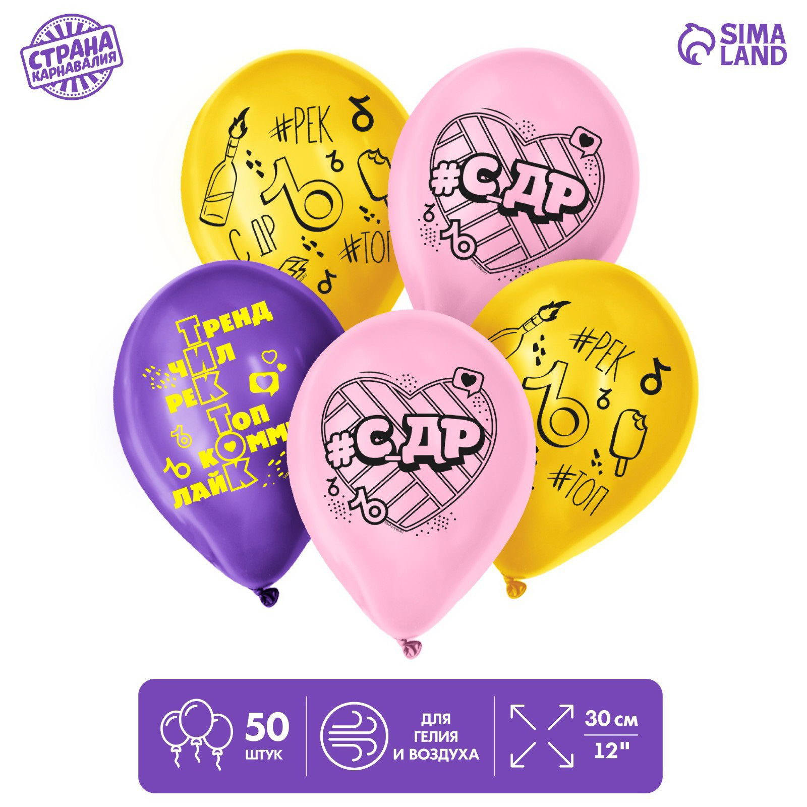 Воздушные шары латексные 12""L против T", 50 шт., Страна Карнавалия, Россия