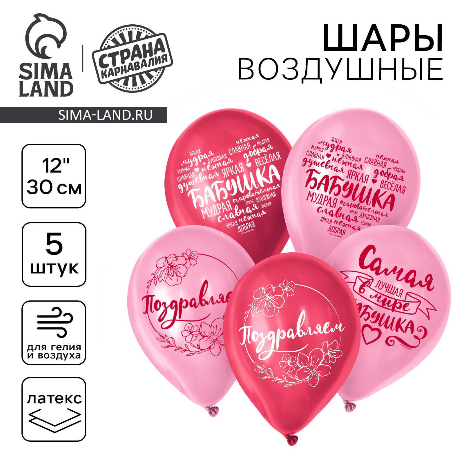 Воздушные шары латексные 12""Бабушка. Пожелания", 5 шт., Страна Карнавалия, Россия