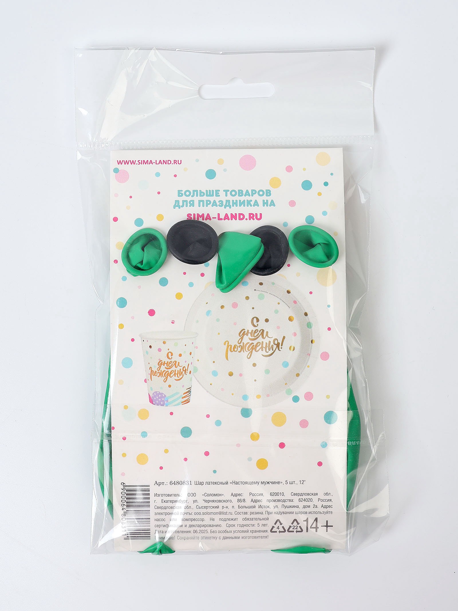 Воздушный шар латексный 12""Настоящему мужчине", 5 шт., Страна Карнавалия, Россия