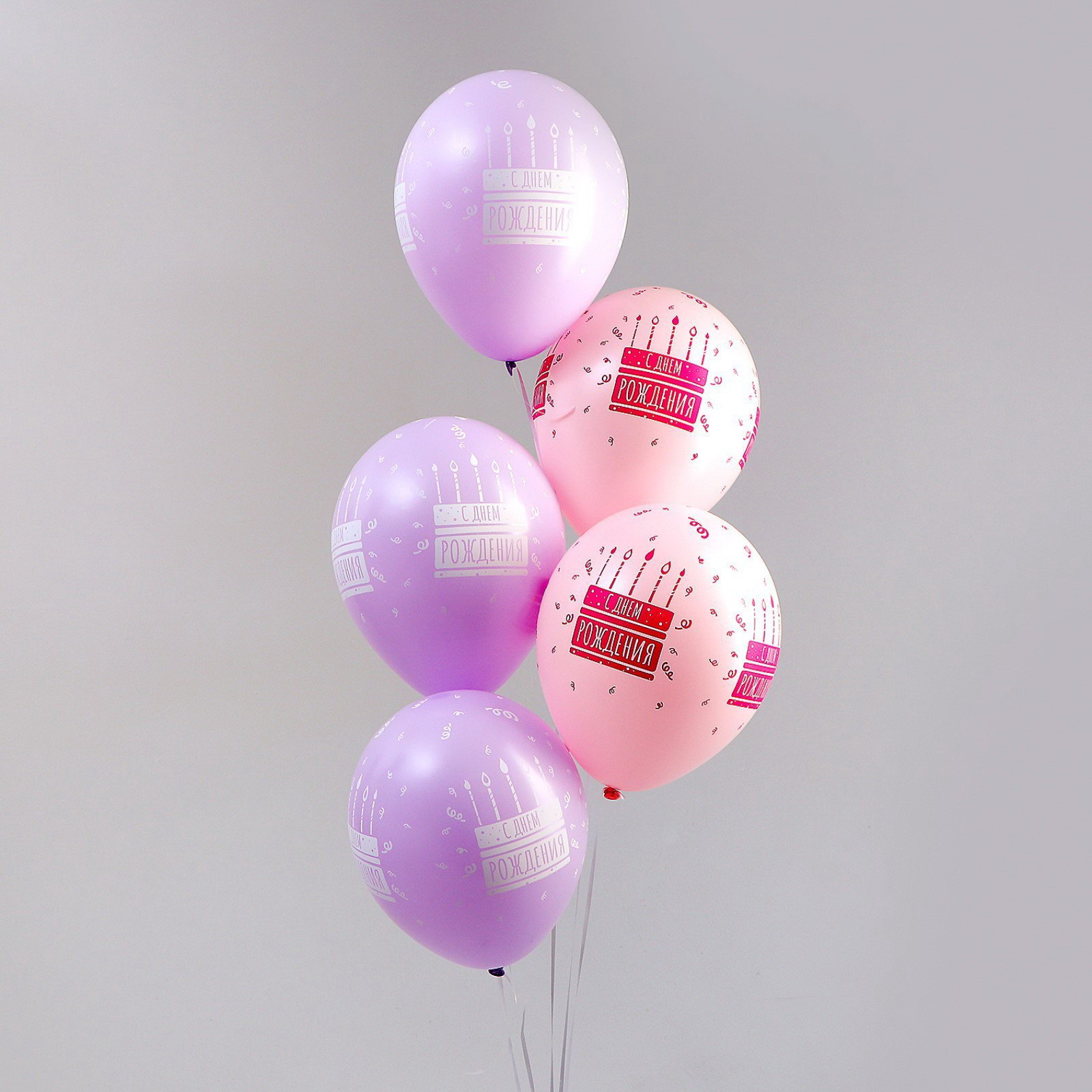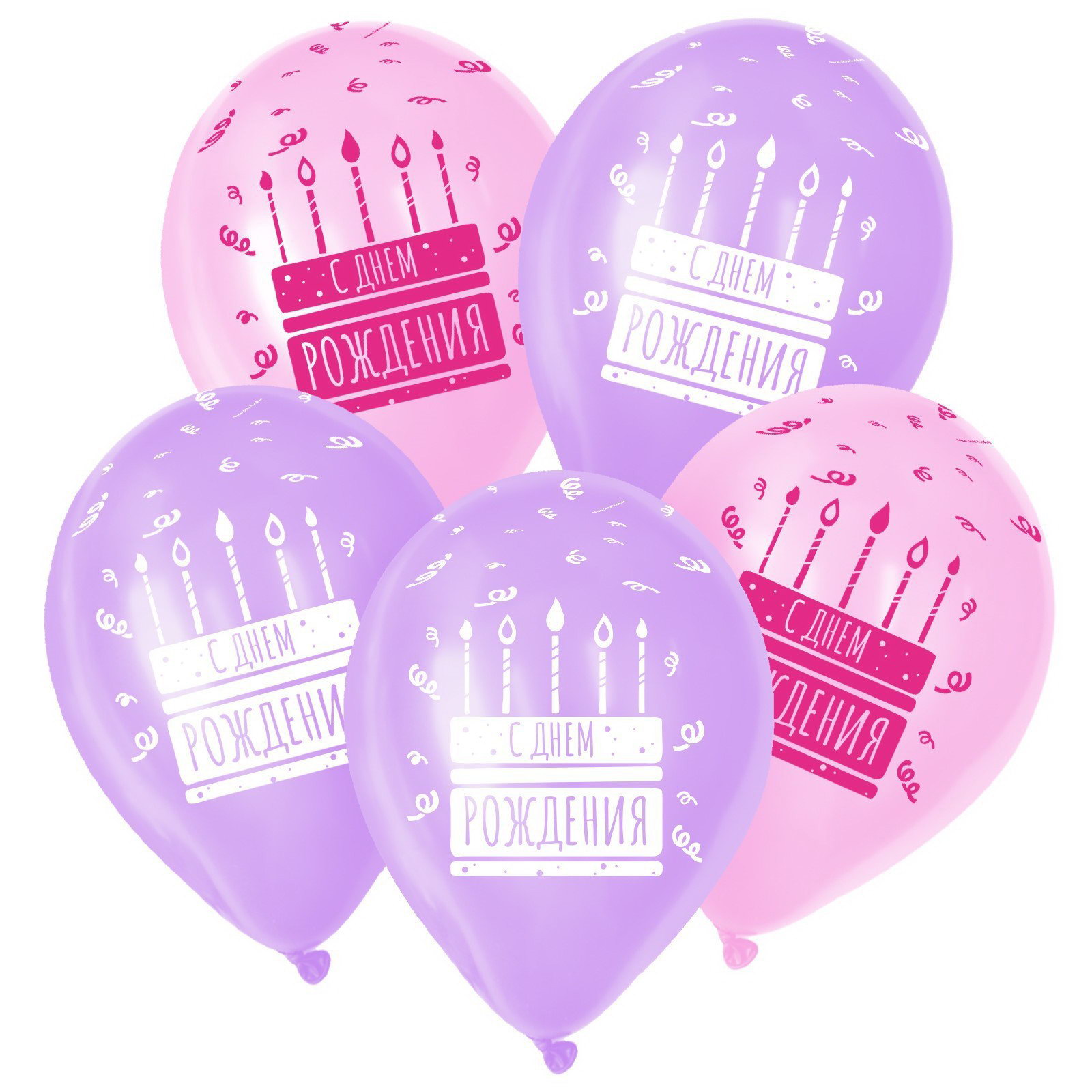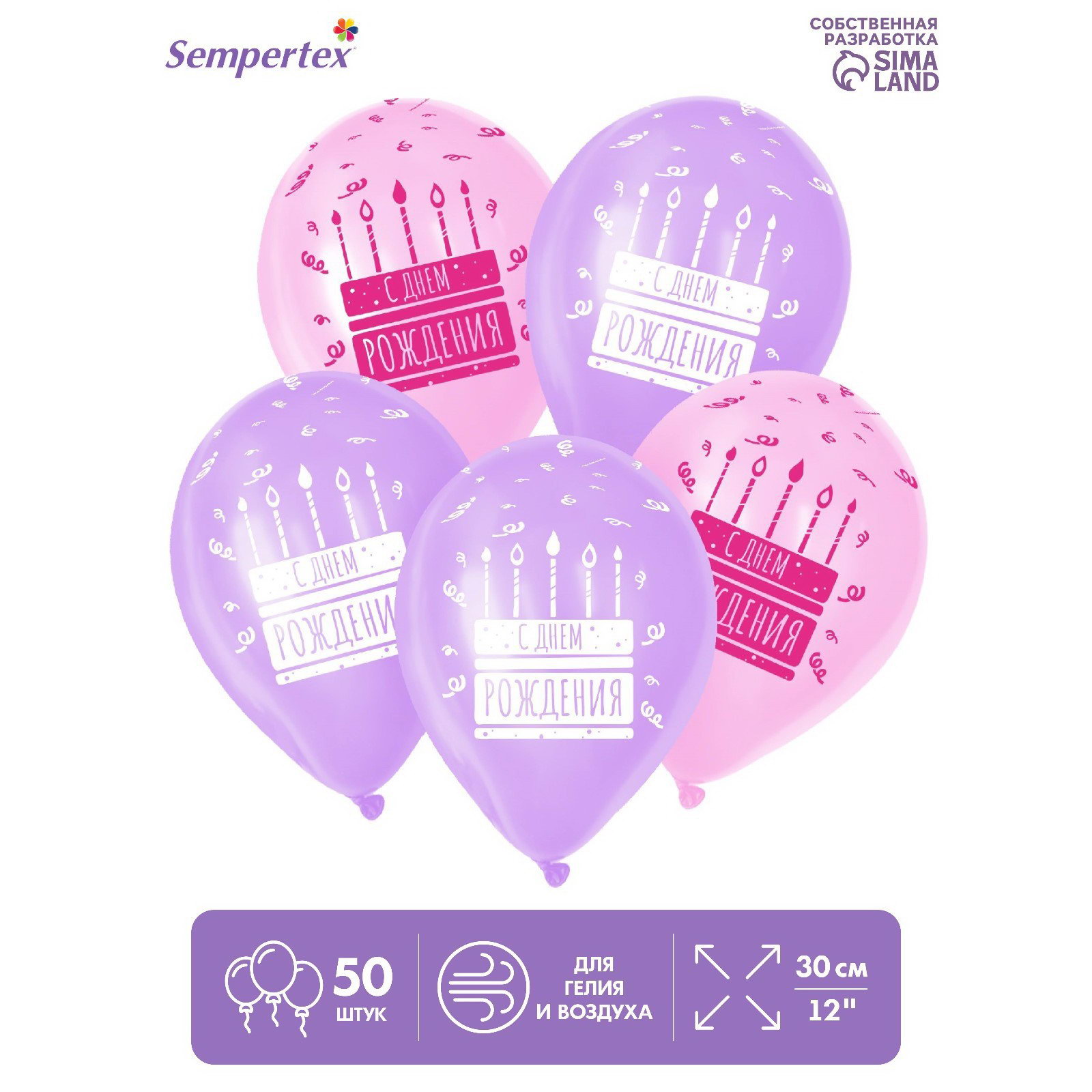 Воздушный шар латексный 12""С Днём рождения. Торт", пастель, цвет сиреневый, розовый, 50 шт., 20x25x0.5 см., Sempertex, Колумбия