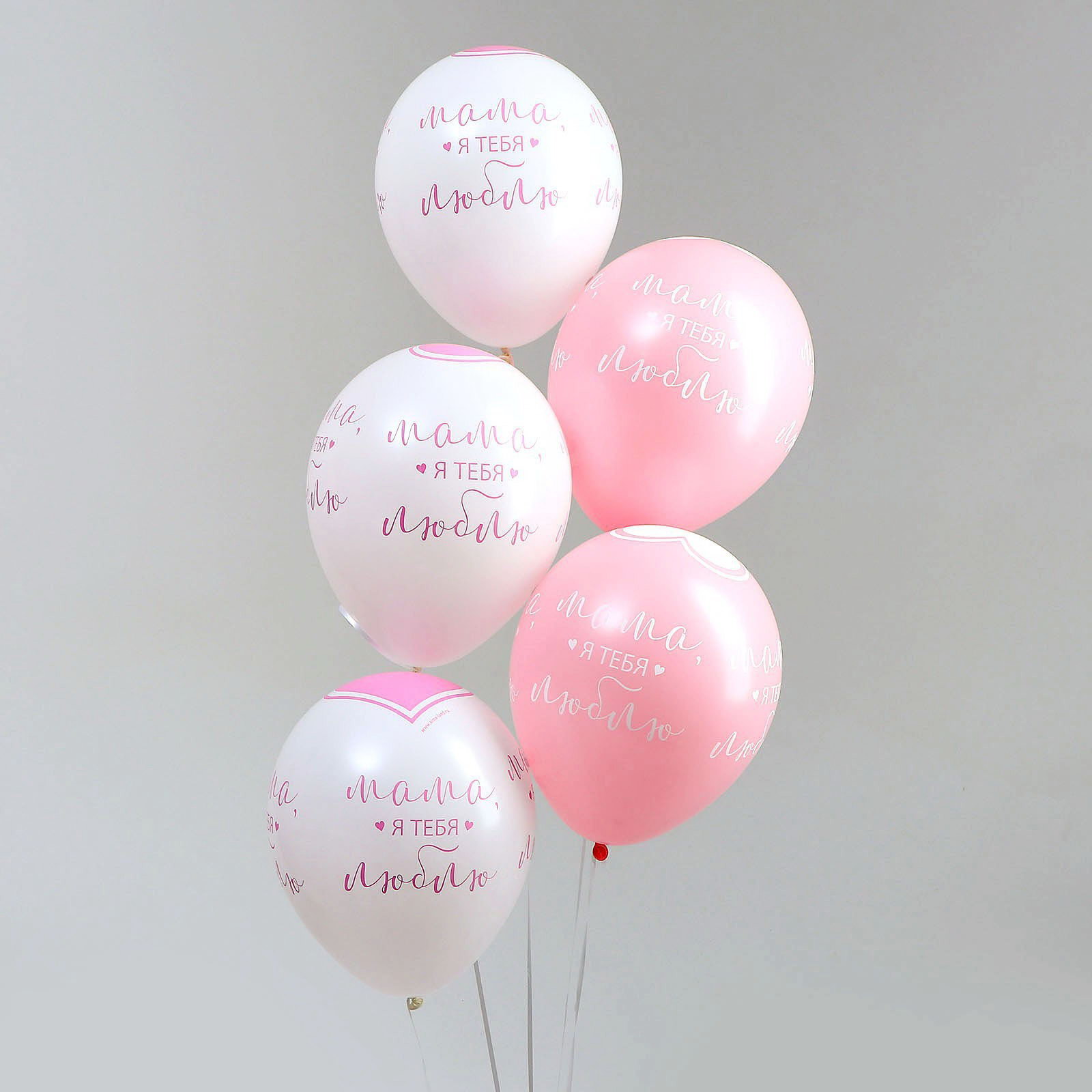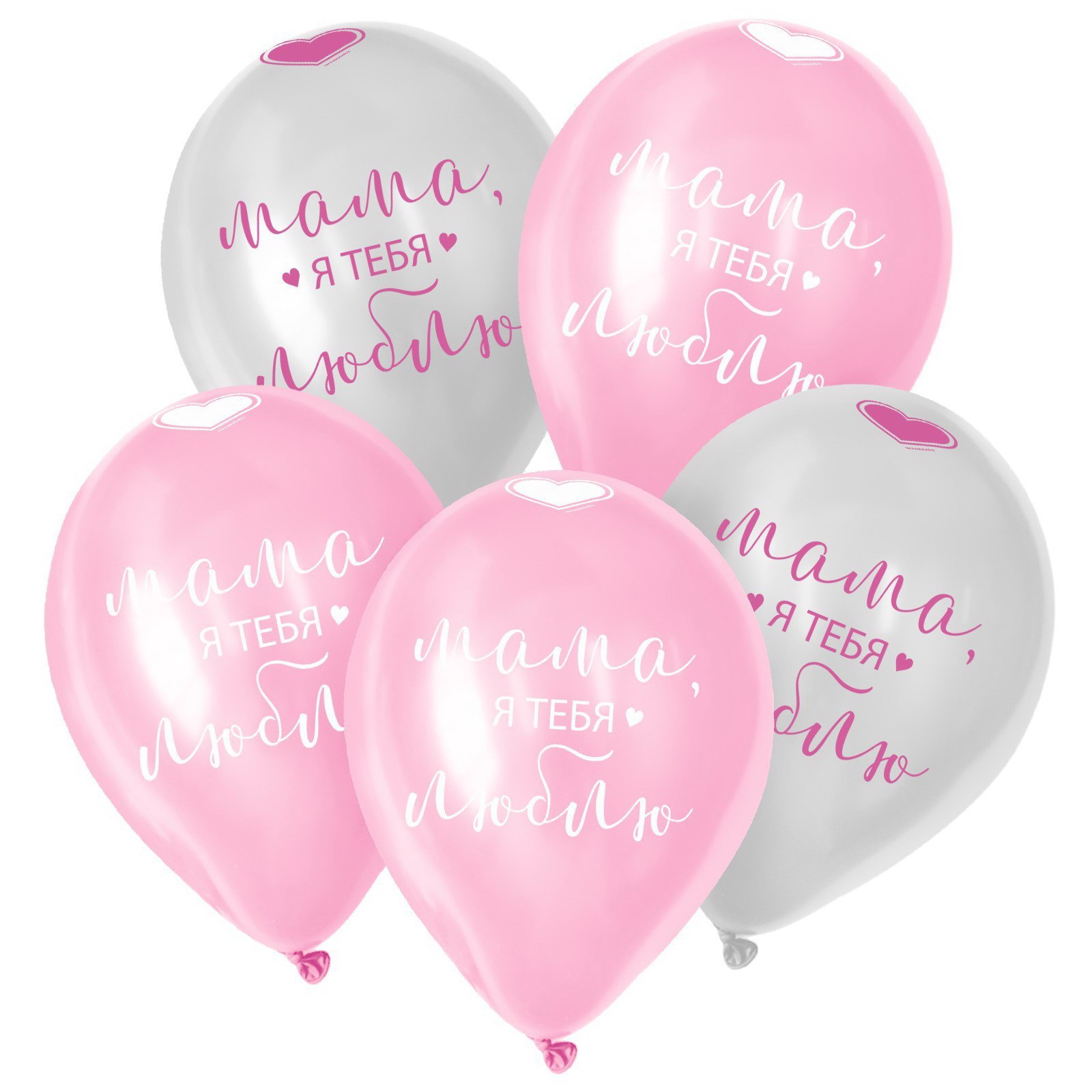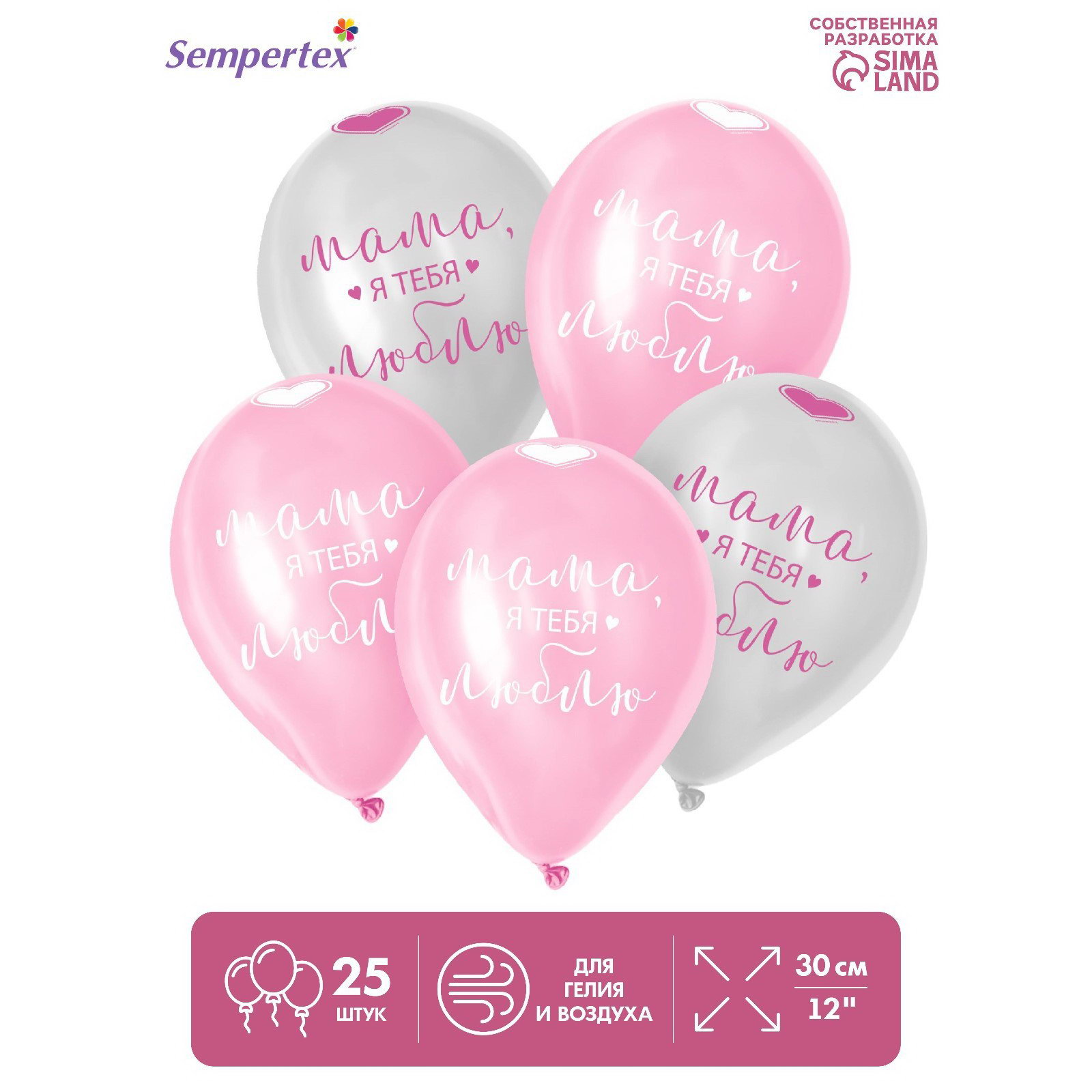 Шар латексный 12""Мама, я тебя люблю", пастель, набор 25 шт., цвет розовый, белый, 15x20x0.5 см., Sempertex, Колумбия