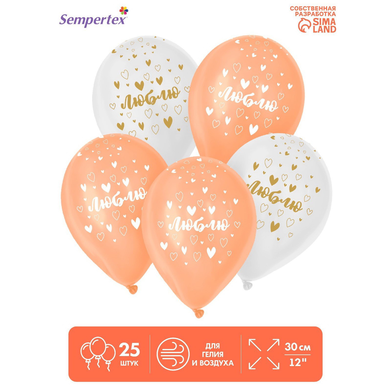 Шар латексный 12""Люблю", пастель, набор 25 шт., цвет розовый, белый, 15x20x0.5 см., Sempertex, Колумбия