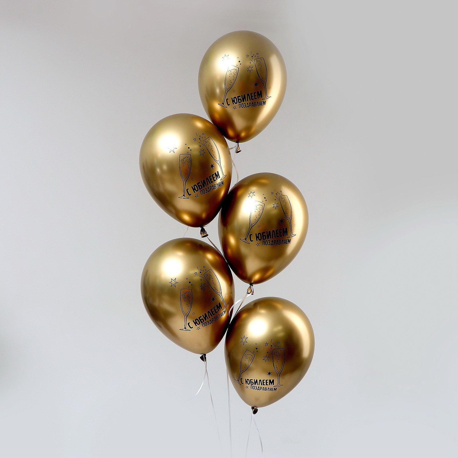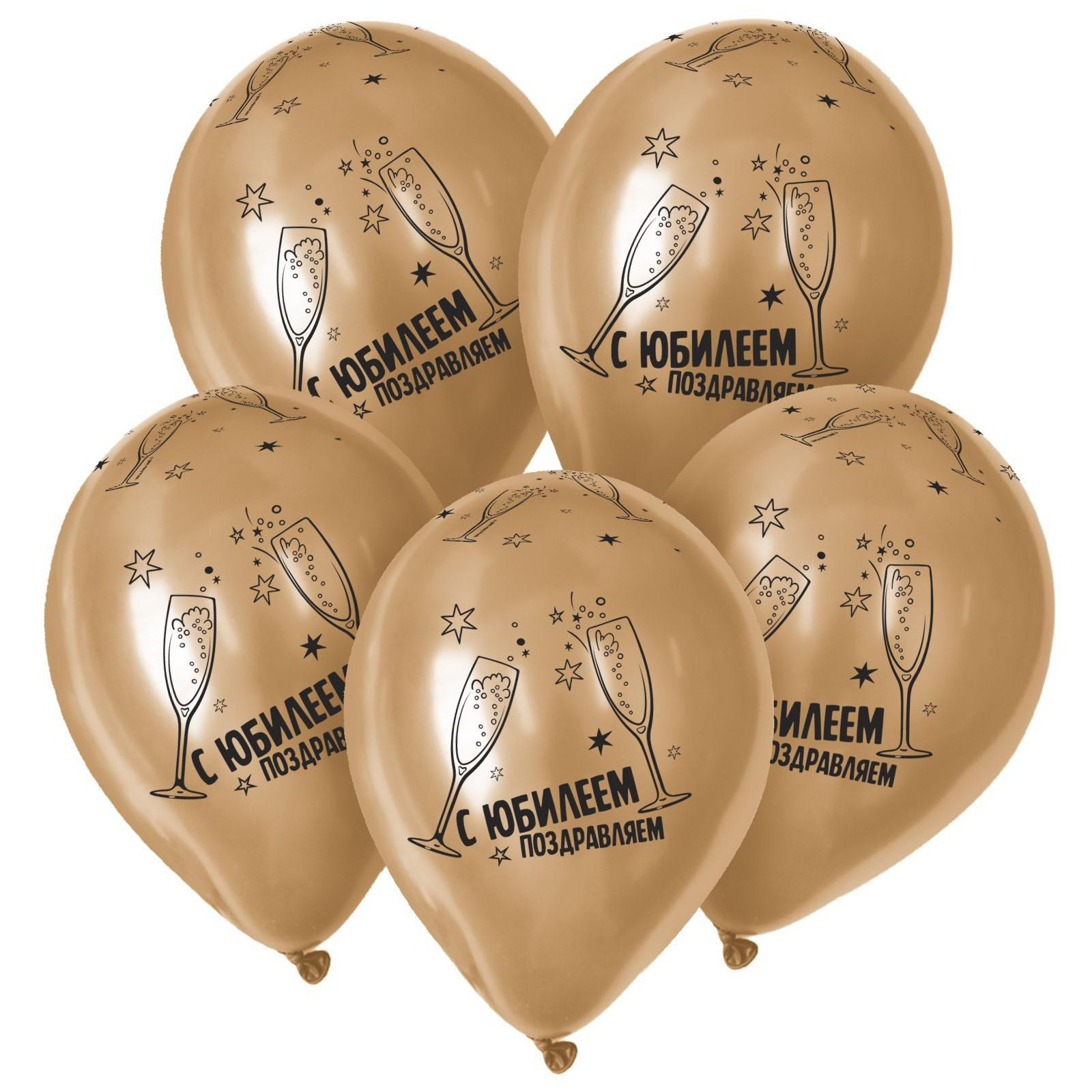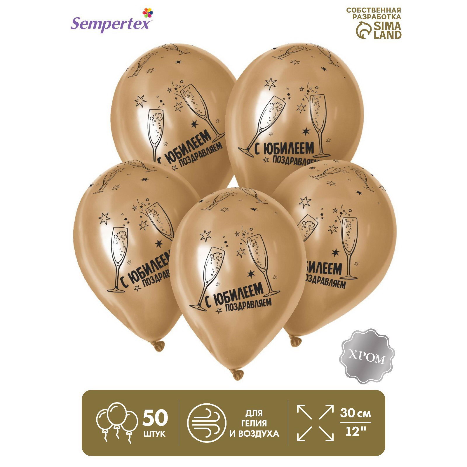 Шар латексный 12""С Юбилеем", набор 50 шт., цвета золото ХРОМ, 20x25x0.5 см., Sempertex, Колумбия