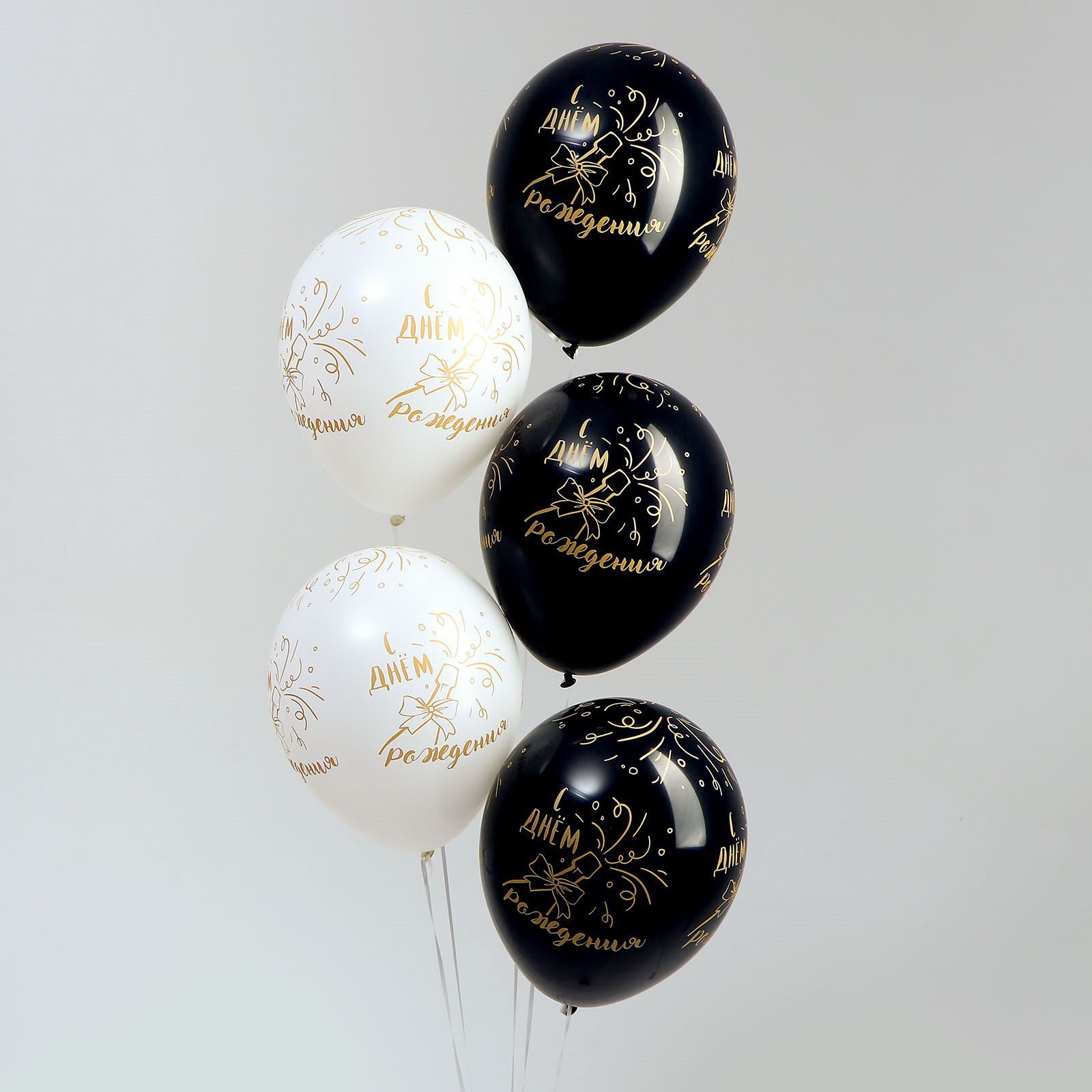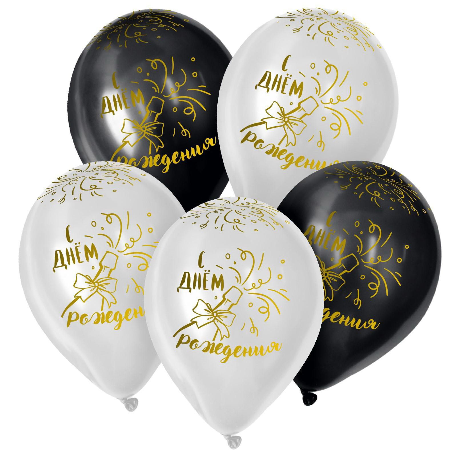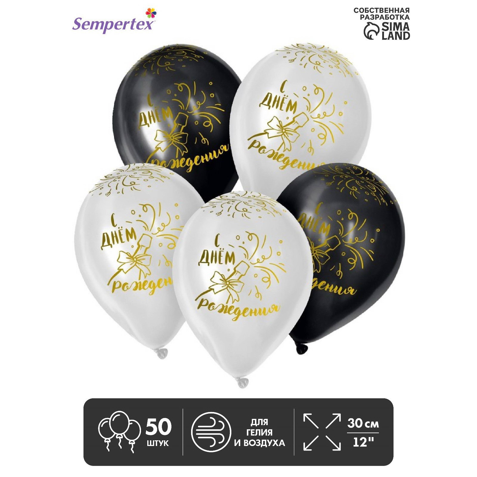 Шар латексный 12""С Днём рождения", праздничный, пастель, набор 50 шт., цвета чёрный, белый, 20x25x0.5 см., Sempertex, Колумбия