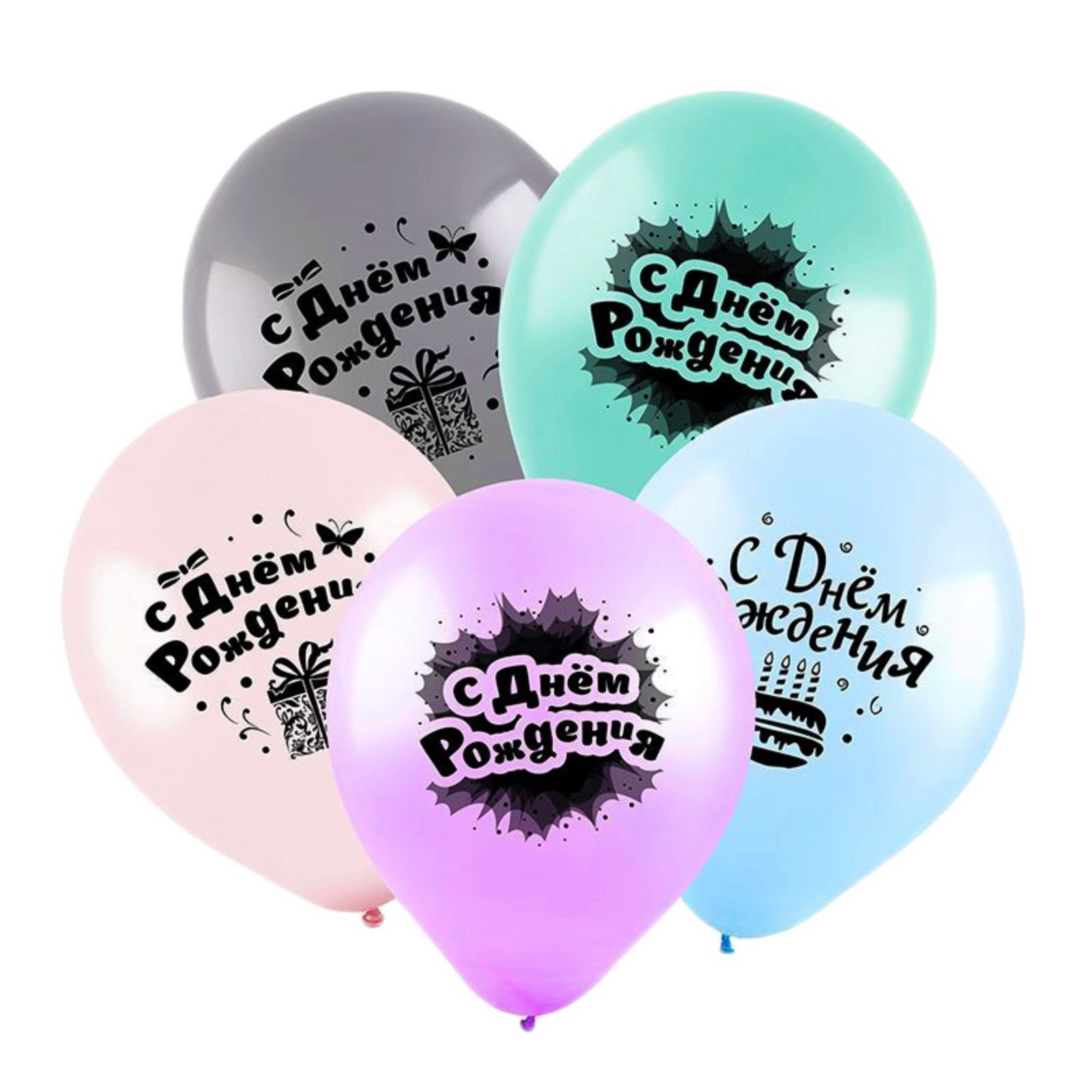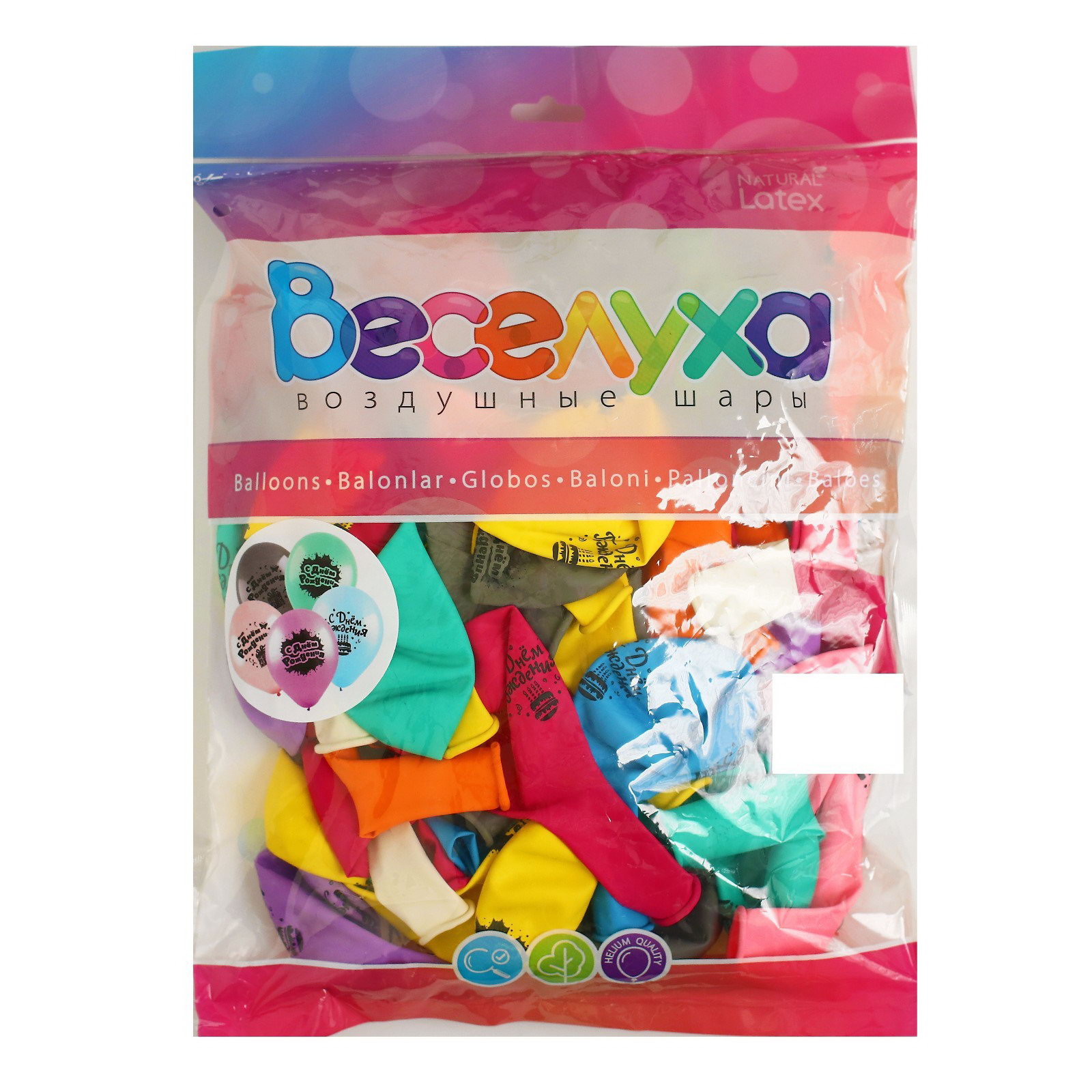 Шар латексный 12""С днём рождения", именины, пастель, 2-сторонний, набор 25 шт., МИКС, Веселуха, Турция