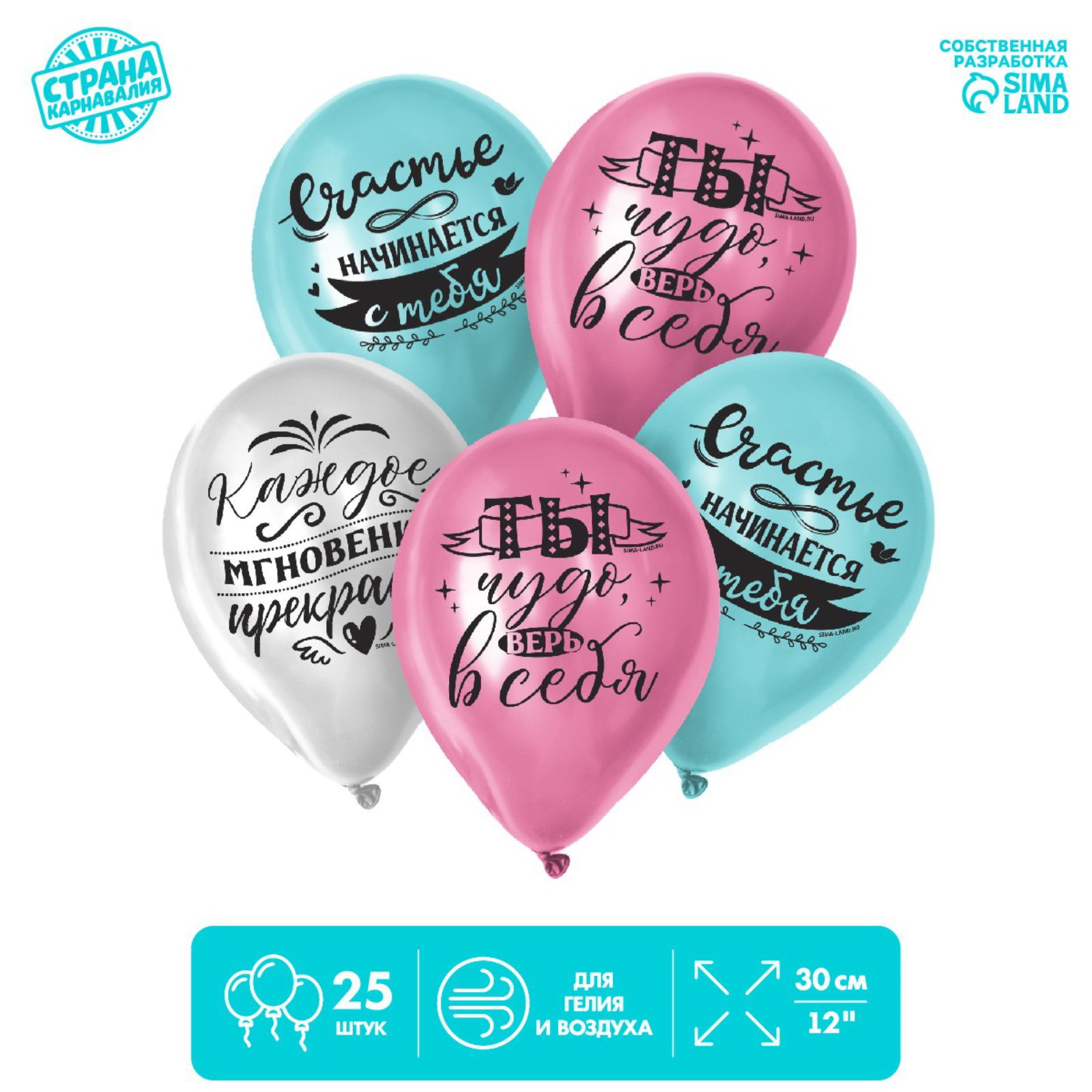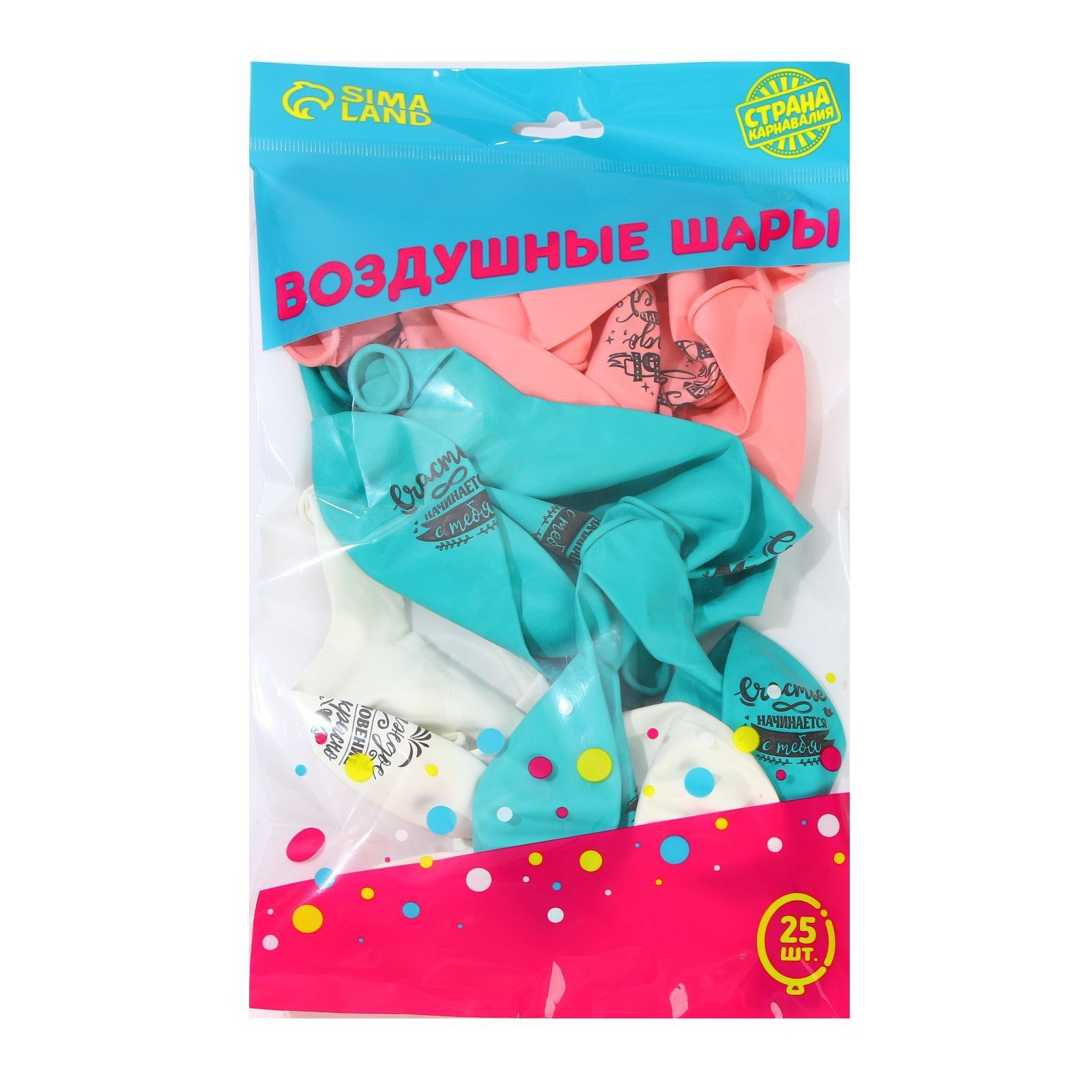 Воздушный шар латексный 12""Счастье начинается с тебя", 25 шт., Страна Карнавалия, Россия